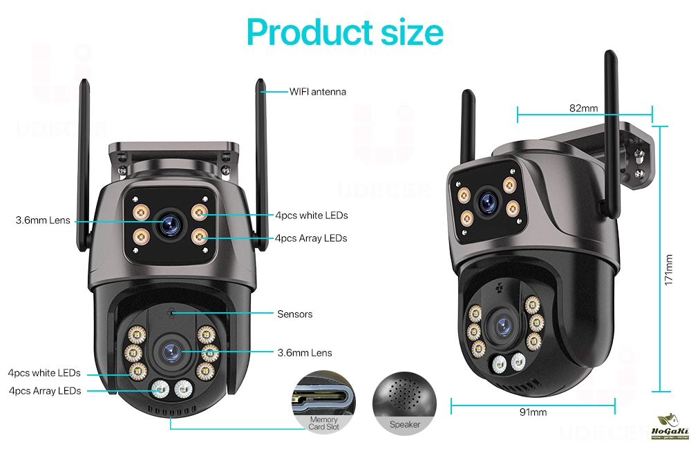 - Equipped with 8 white LEDs and 8 high-efficiency infrared LEDs, it can provide you with colorful and high-definition image effects no matter day or night.![]()