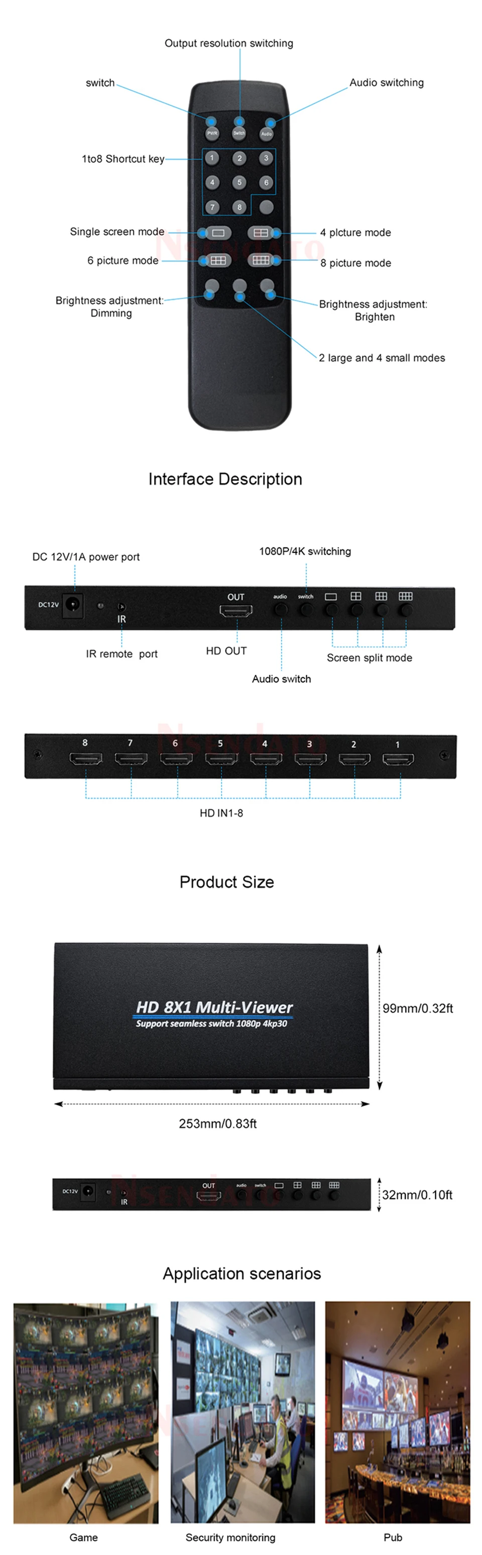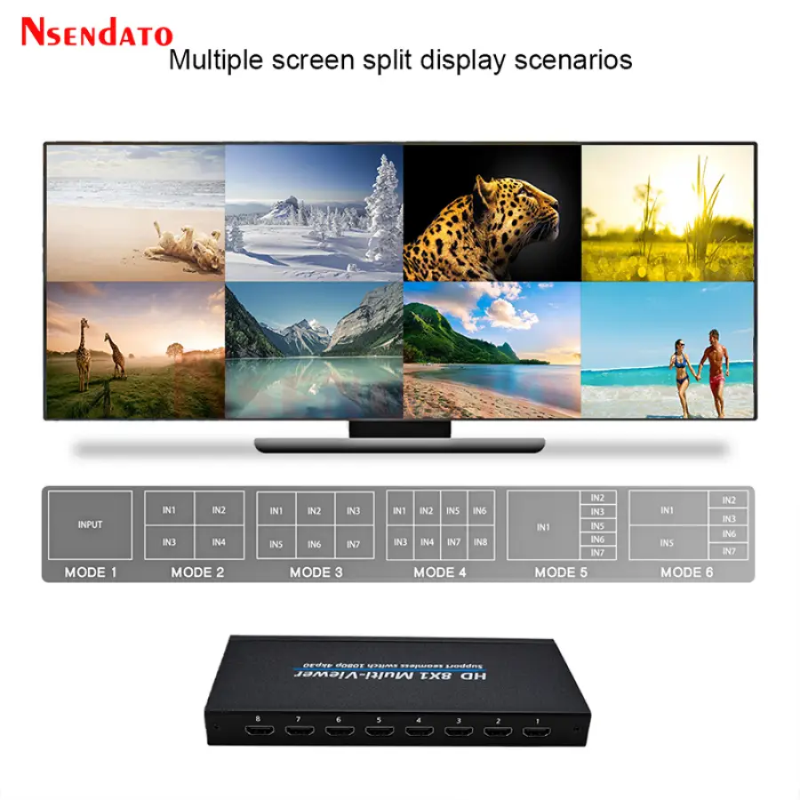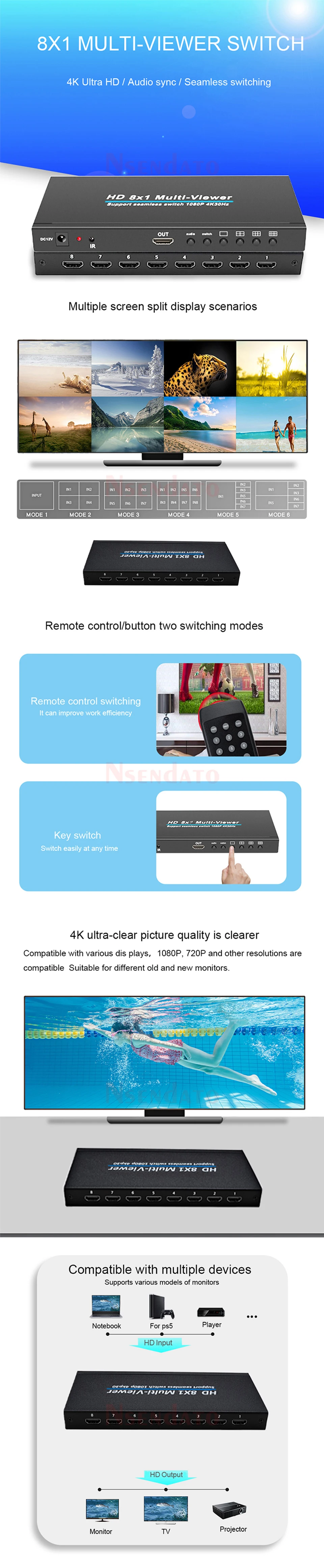 4k HDMI Quad Screen Multiviewer 8x1 HDMI Video Seamless Switch Multiviewer 8 in 1 out HDMI Screen Divider Switch 6 View Modes
