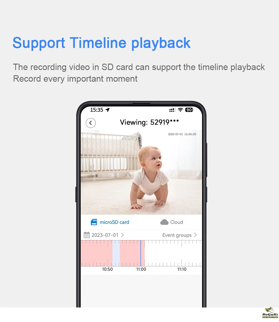 2. Baby monitor supports two storage methods: SD card (32GB, 64GB, 128GB) and cloud storage. The SD card is not included and needs to be purchased separately.