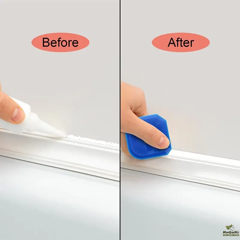 Re-usability: the caulking tool can repeat to use and good for any edge, corners, joints; Tidy up easily, just clean them with a damp cloth and convenient to apply next time