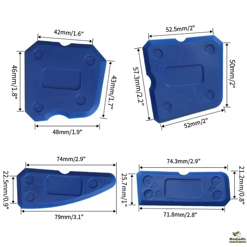 Flexible and durable material: the caulking tools is made of flexible silicone with good quality, which is durable and have a long lifetime; Each package includes 4 pieces blue sealant tools in different shapes