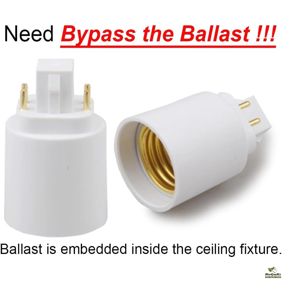 This lamp base converter don't change any voltage or current. If there is a ballast connected, dismantle ballast before install the LED light, otherwise the ballast will make resonance high voltage which destroy the light. Note: It is 100% that PL-C downlight fixture has ballast inside.