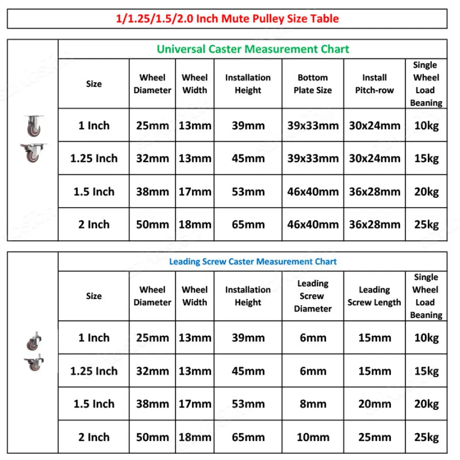 4pcs Furniture Casters Heavy Universal Mute Wheel 360° Swivel Rubber Roller for Platform Trolley Chair Household Accessories