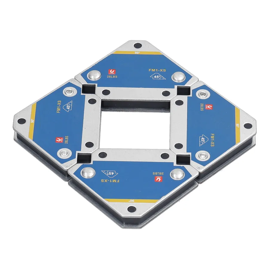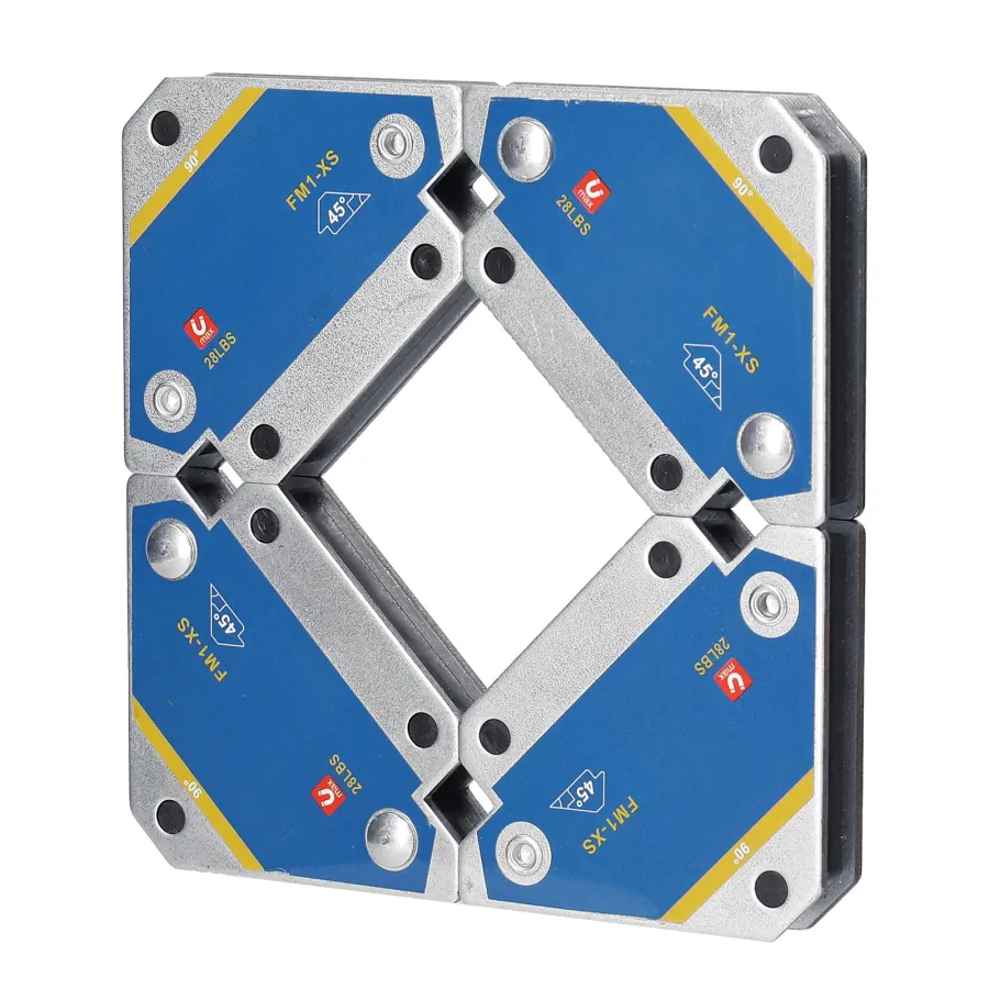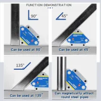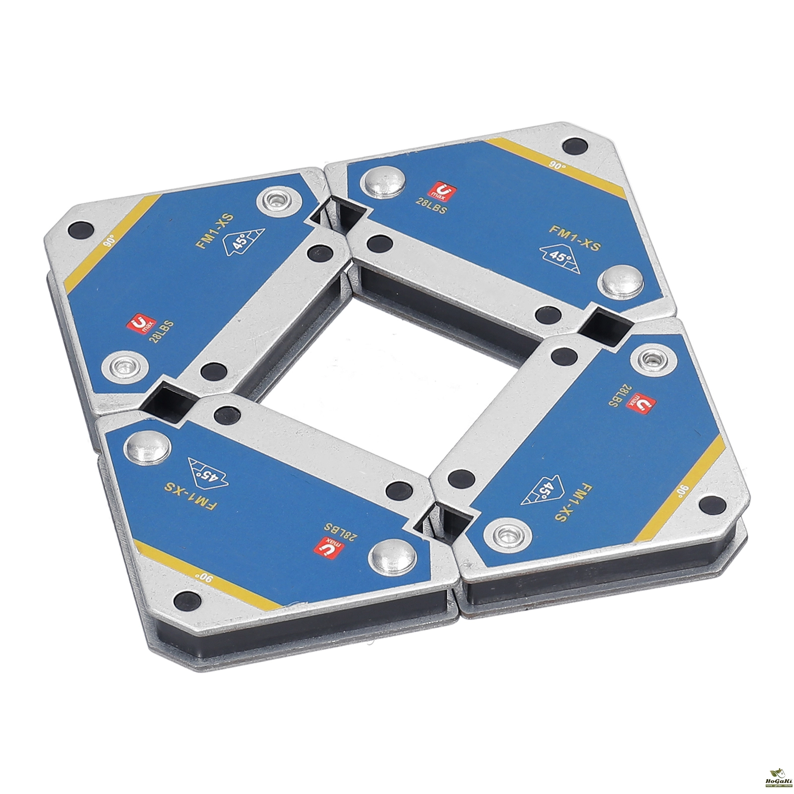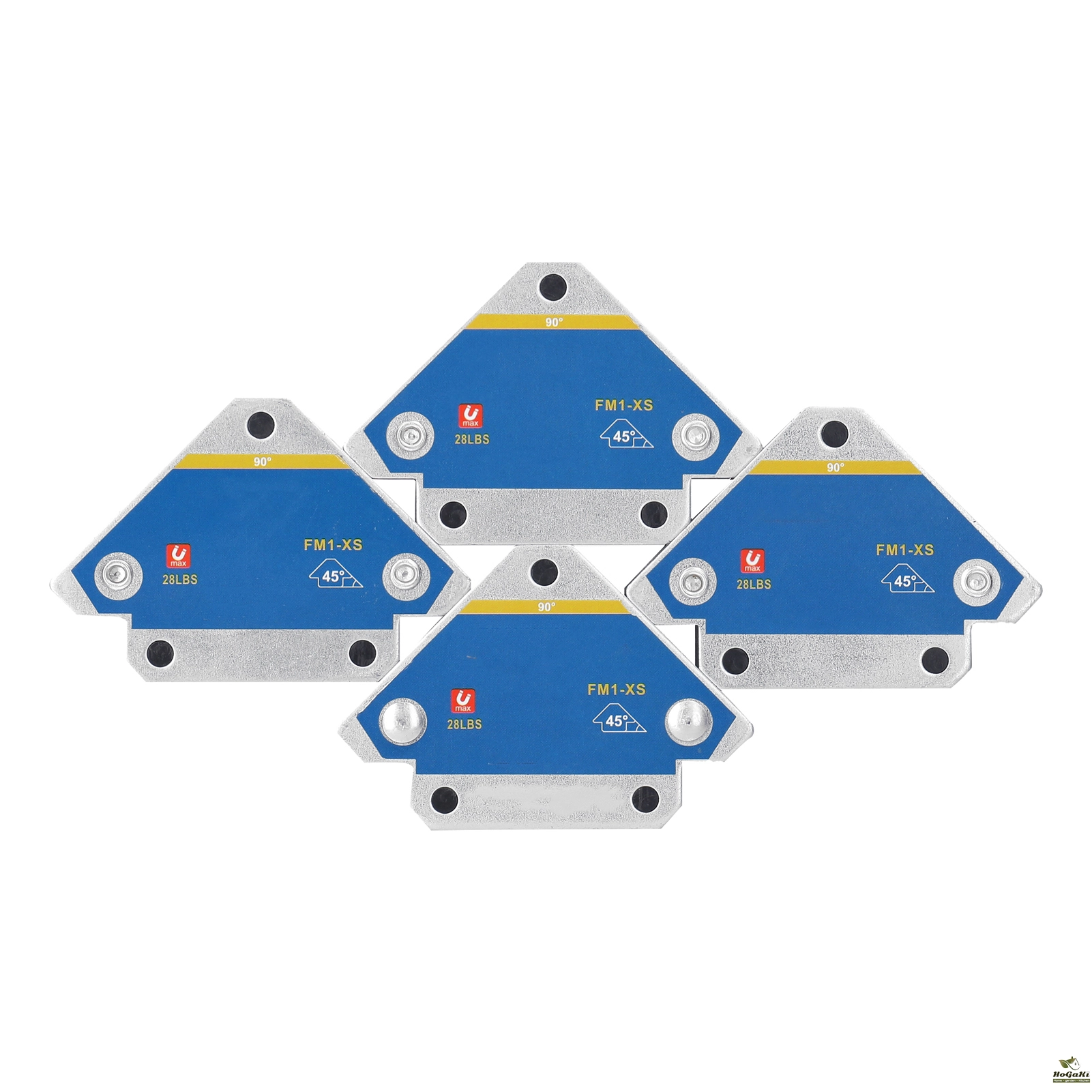This is a set of quality magnetic welding fixer, made of ferrite double-layer thick galvanized sheet, flat without deformation, and with fine corrosion resistance. High-precision, with multiple angles, designed with 45°, 90°, 135° angles to satisfied with all your demands. 4pcs in a set, 28lb max pulling ability, perfect for welding, soldering, pipes installation, assembly, magnetic pick-up tool etc. You can have a try.