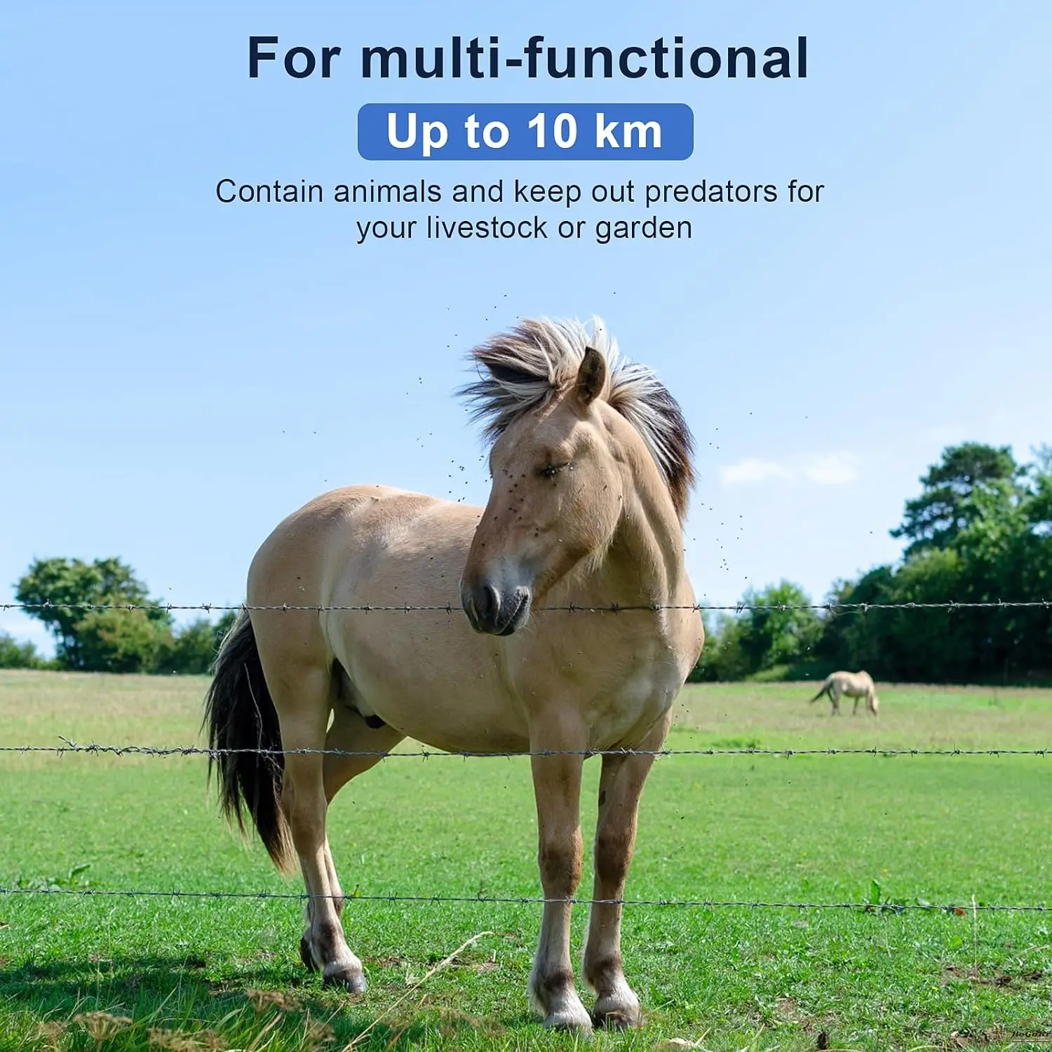 【Scope of Application】: DC fence energizer, the electrified distance of it can reach 5-10 miles (no weeds), and the coverage area can reach 100 acres (no weeds).