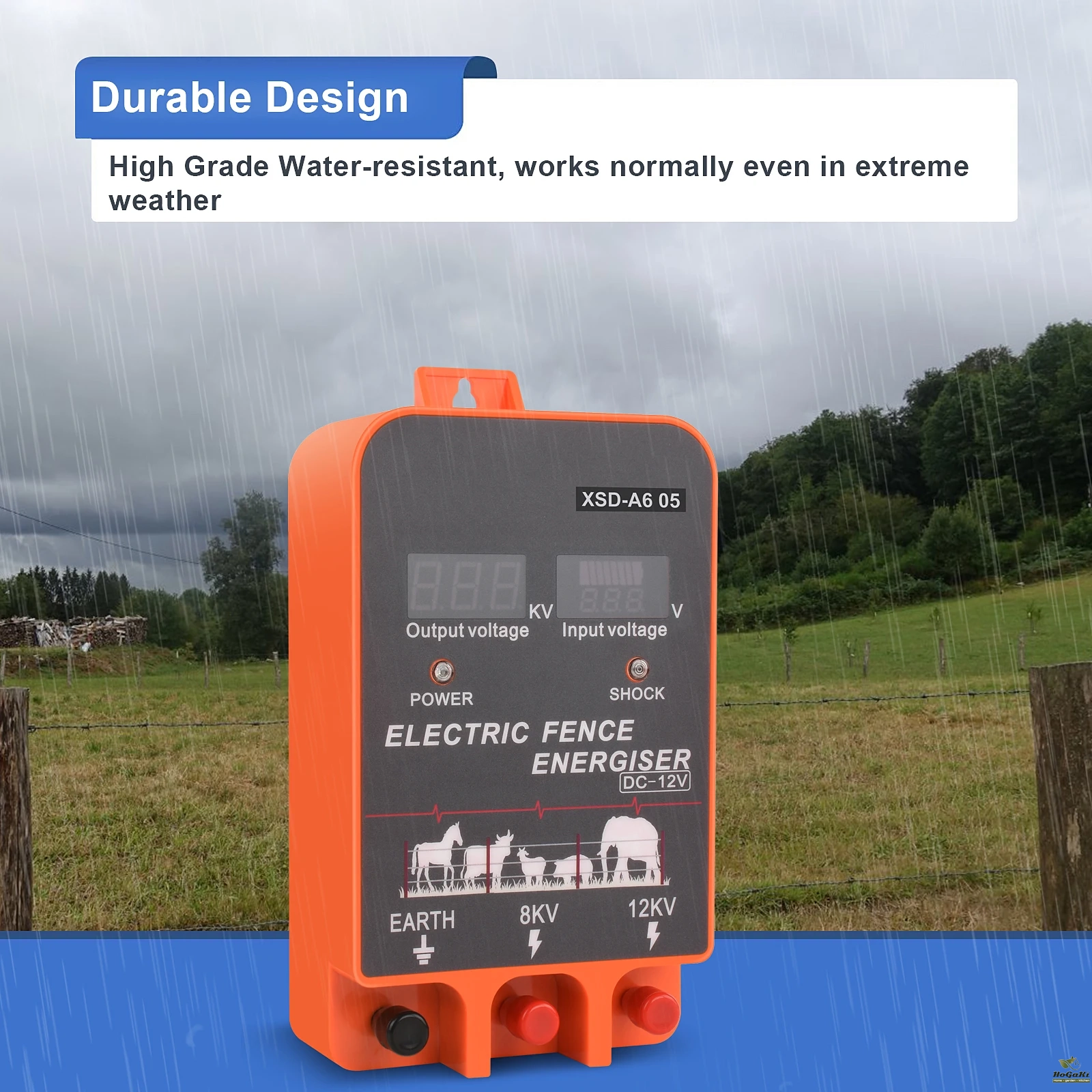 【 Waterproof】: Electric fence energizer designed to be waterproof, suitable for use in wet environments, makes it to be used normally even in extreme weather.