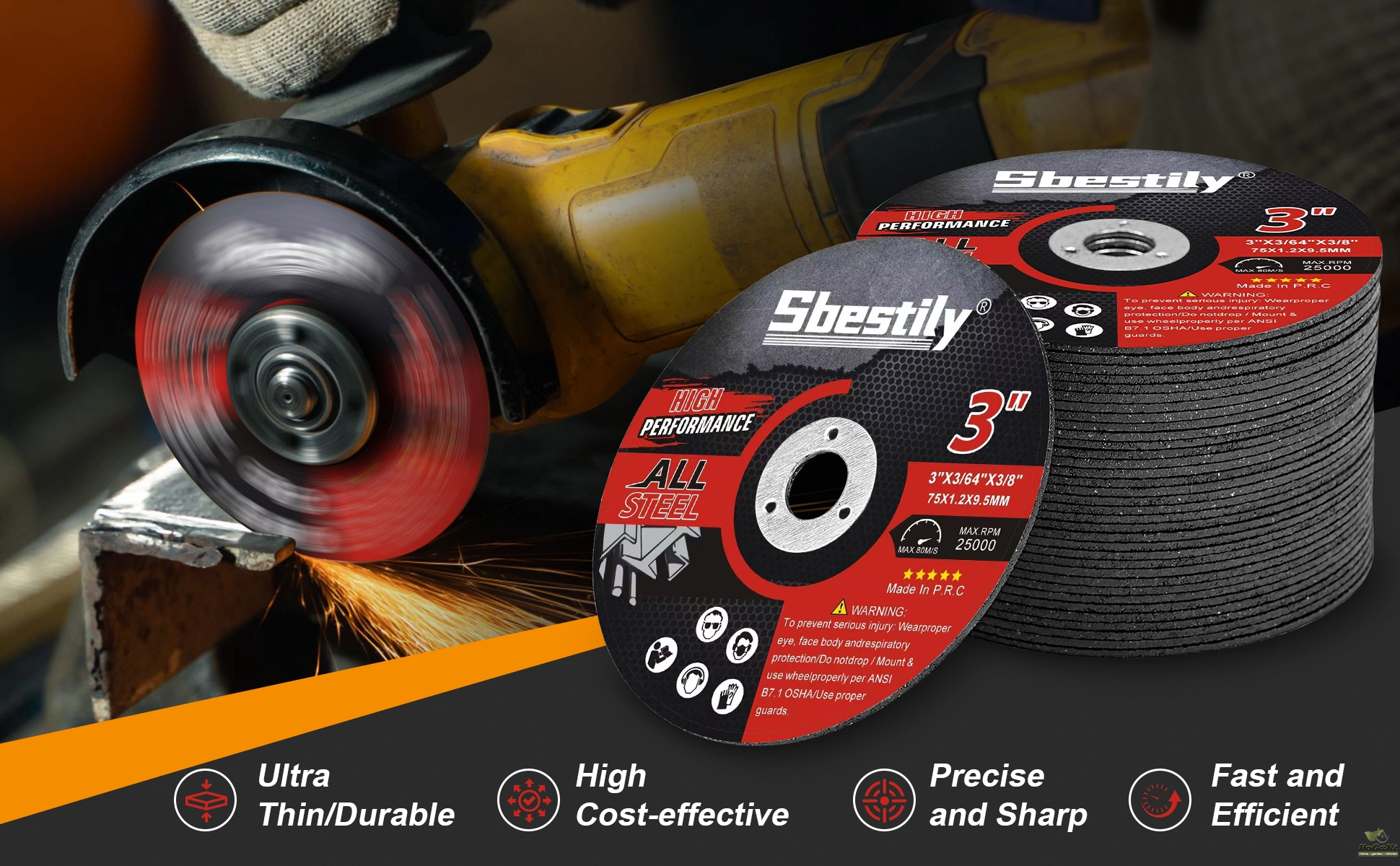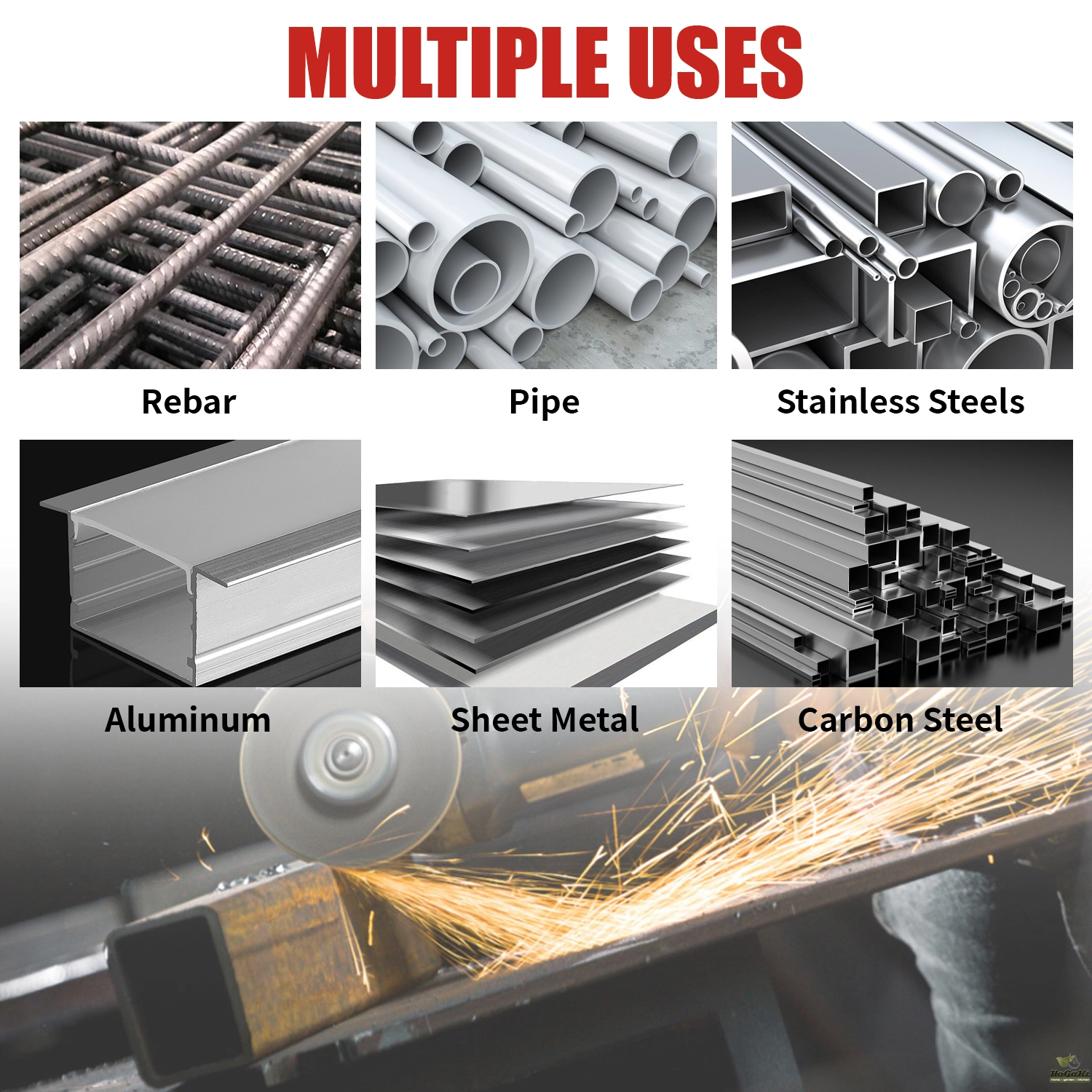 -- MULTIPLE USES: The grinding wheel is designed to cut fiberglass, steel, iron, plastic, stainless steel and other ferrous metals for powerful cuts. Cutting all metal, steel and stainless steel components including rebar, steel pipe, structural and galvanized steel, sheet, structural pipe, black steel. Fast, burr-free cutting