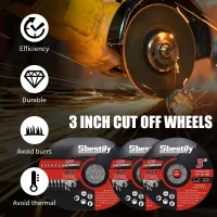 --Made of high-quality corundum and resin, reinforced with double-layer fiberglass mesh, the cutting wheel allows for stronger cuts on metal and stainless steel. Excellent stability is ensured by precise measurements, avoiding the risk of breakage even under lateral pressure. The durability is 2.5 times that of ordinary chips, which can greatly save the time of replacing the cutting wheel.