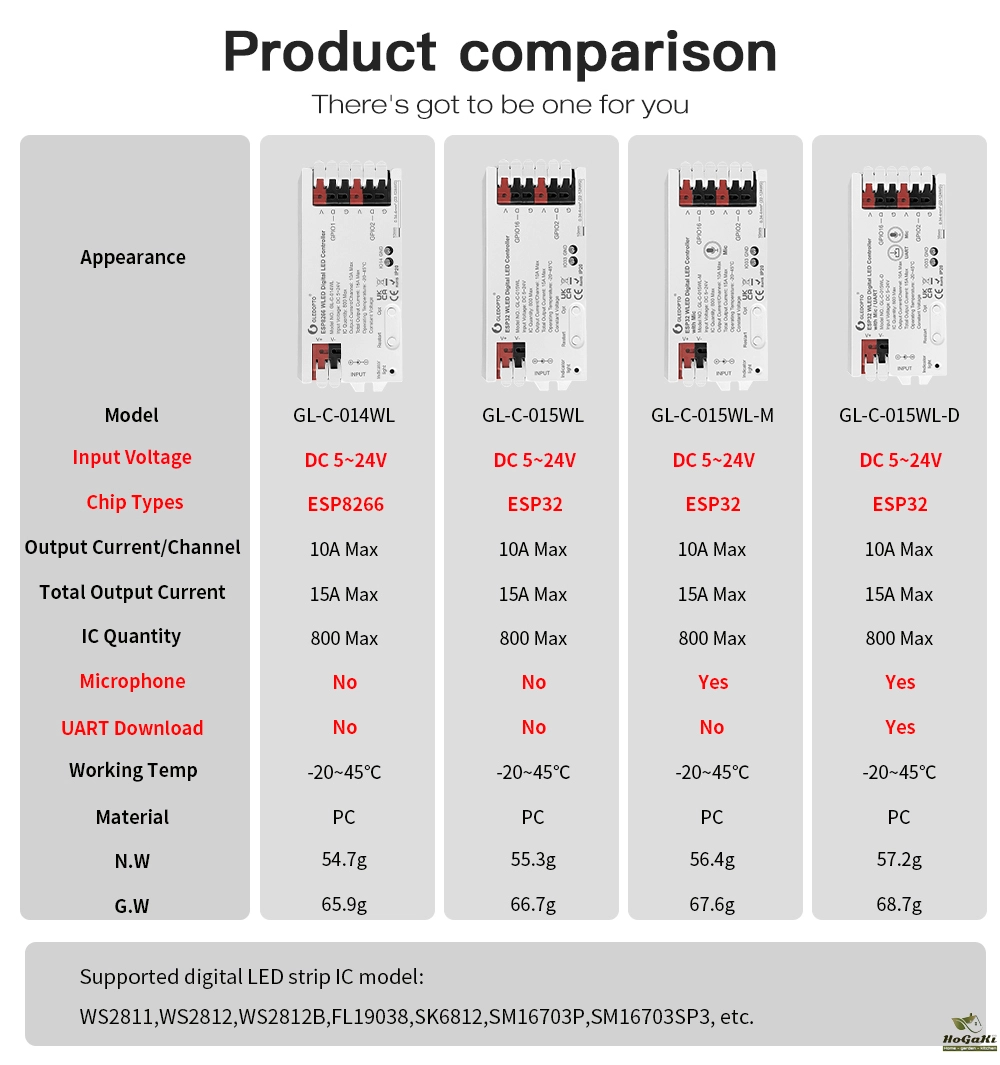 Please note that we have 4 types of WLED controllers with different functions, each with black and white options to choose from.