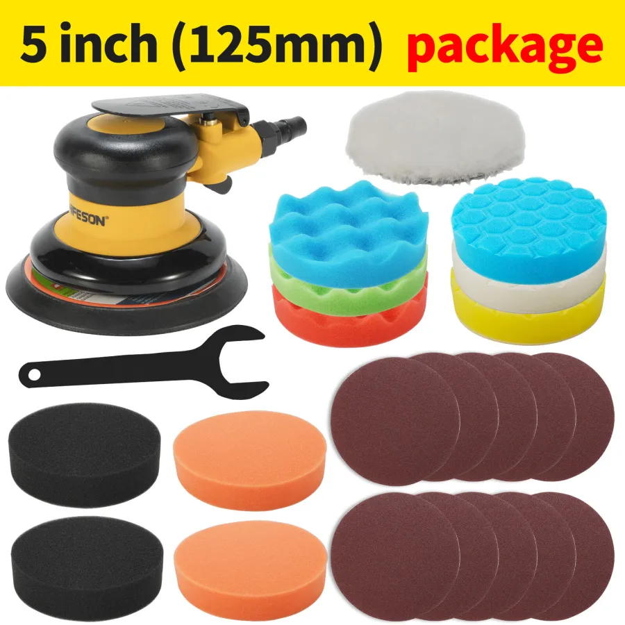 package 3 :5 inch pneumatic sander with 27pcs pad set