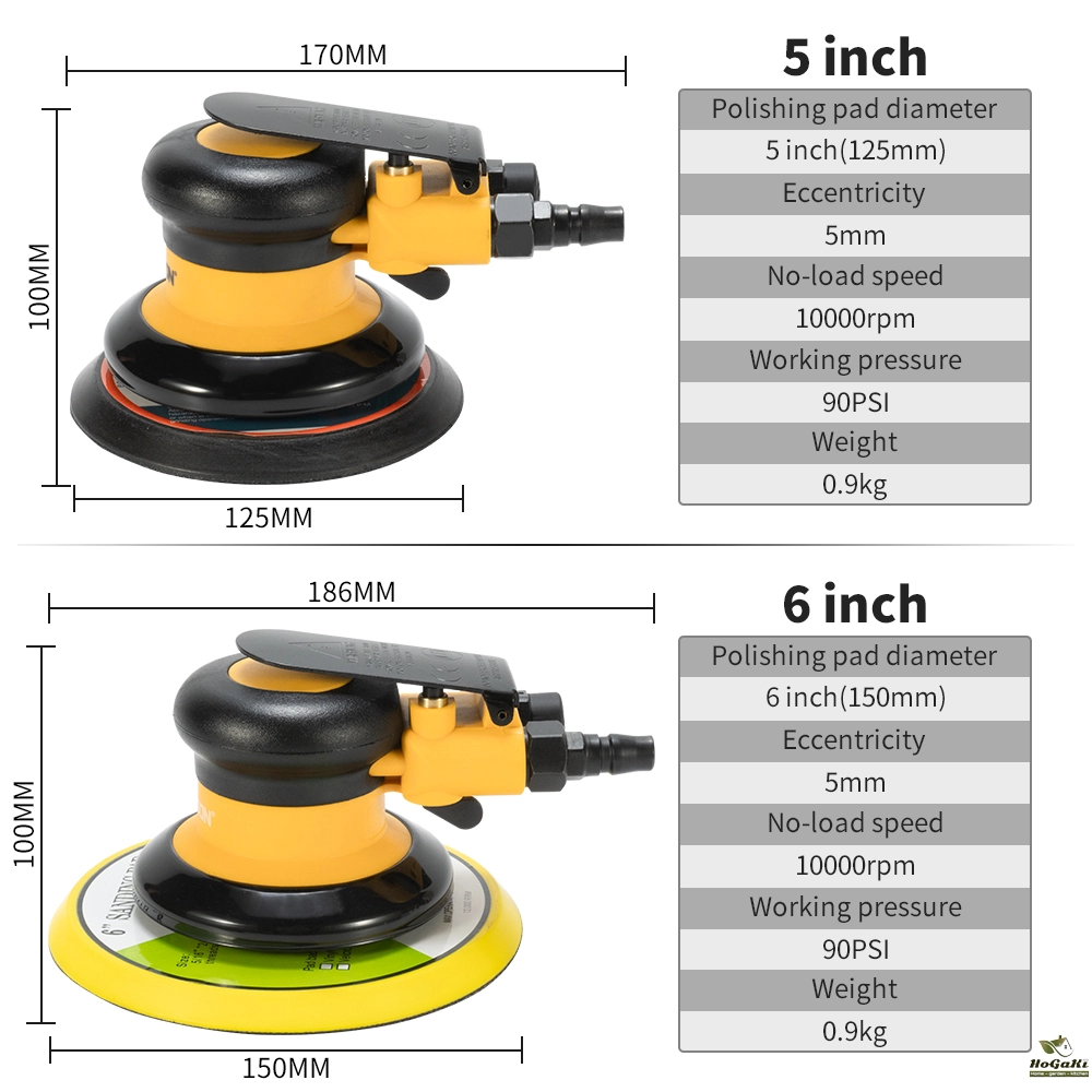 5 / 6 inch pneumatic sander for automobile paint maintenance derusting tool polishing random track palm grinder