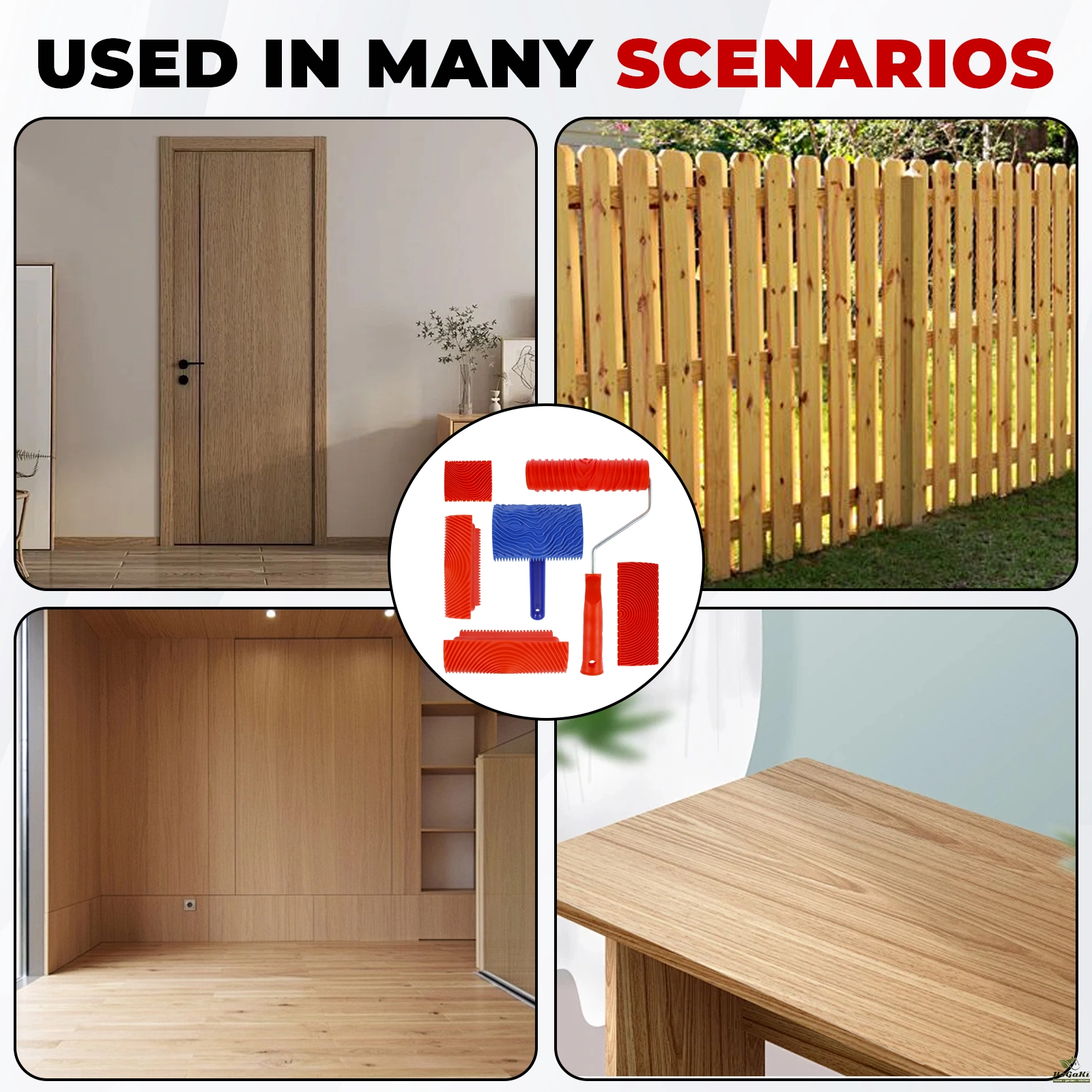 4 Different Rollers: Designed for wood grain decorative applications, our wood grain painting tool comes in a set of 4 different roller types to efficiently transform flat surfaces into realistic woodwork masterpieces