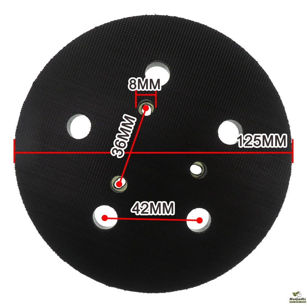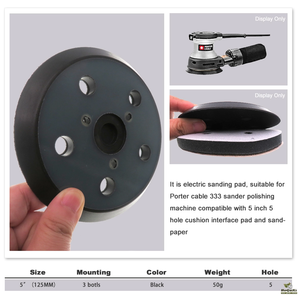 【Product Size】5" hook-&-loop sander pad has 5 dust holes and 3 screw holes, 5 Holes design for effective use with dust collection, preventing damage to disc holders.