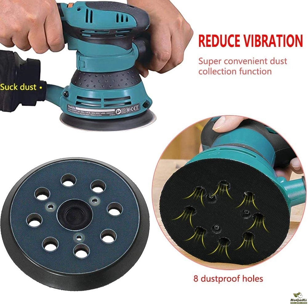*Backing pad has 8 dust collection holes that vacuum up the dust and debris into dust bag assembly.