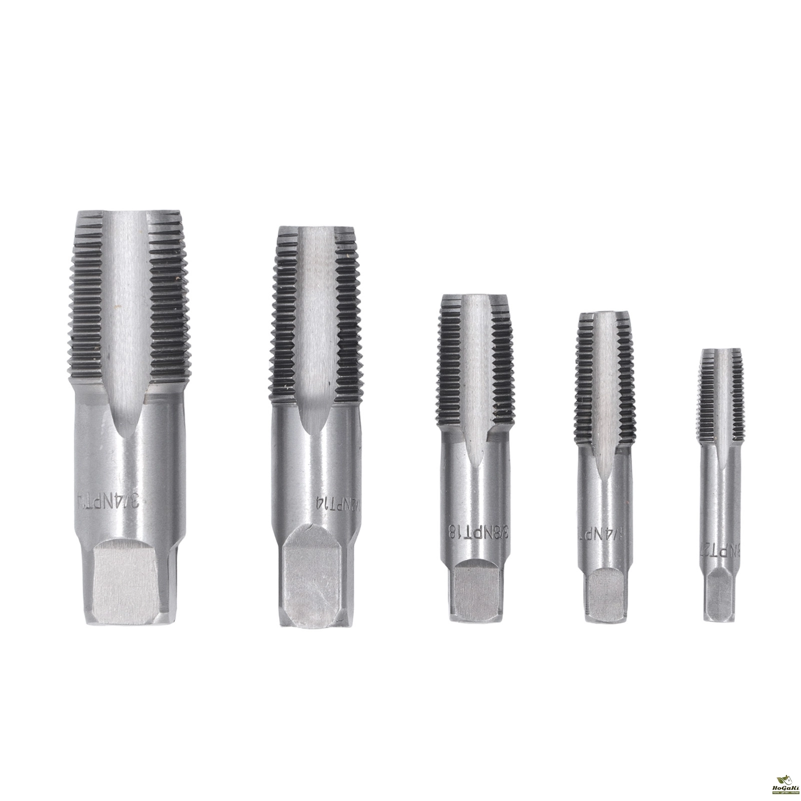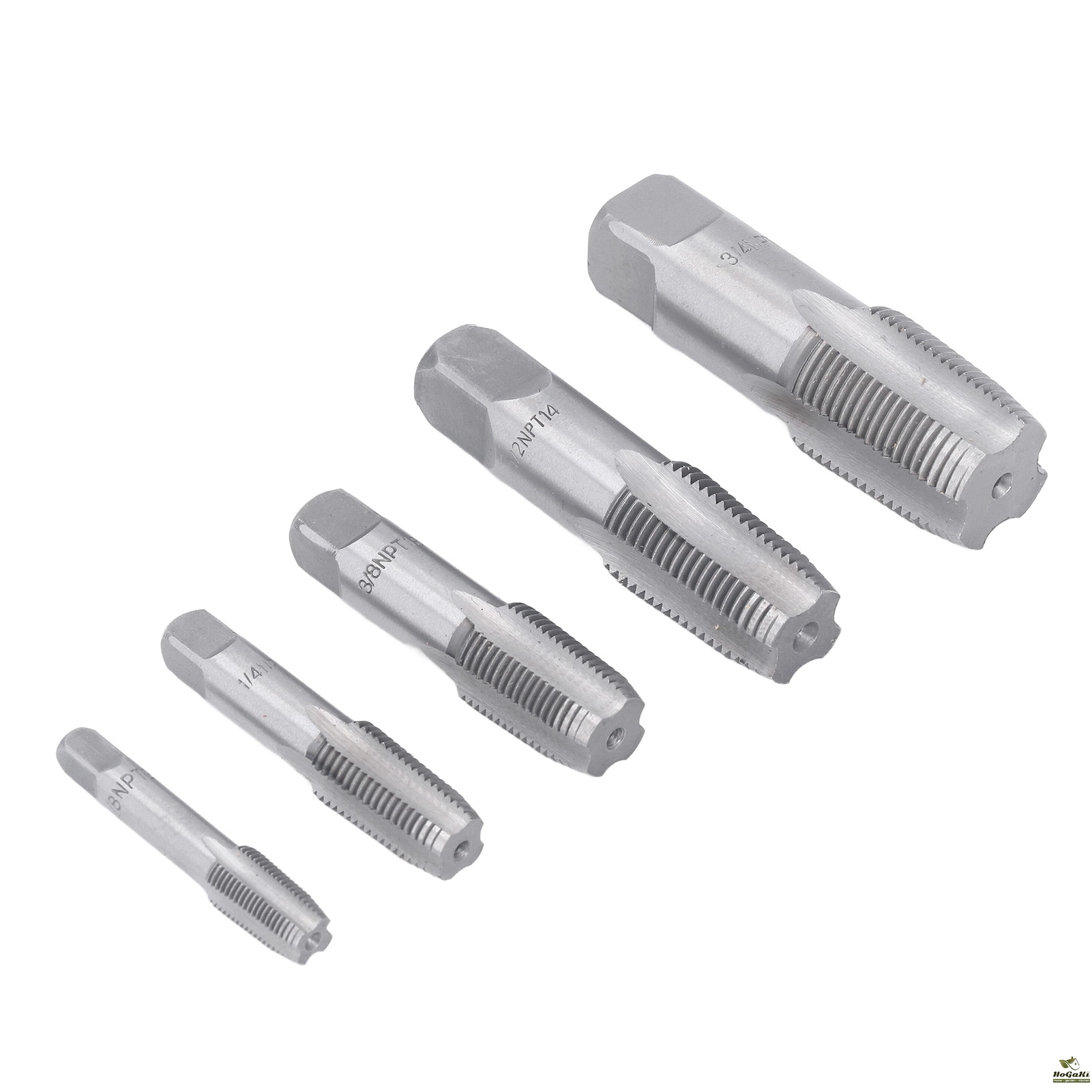 5 Piece NPT Pipe Tap Set Sizes Included 3/4 1/2 3/8 1/4 1/8inch Carbon Steel Threading Plumbing NPT Tap Set with Storage Case