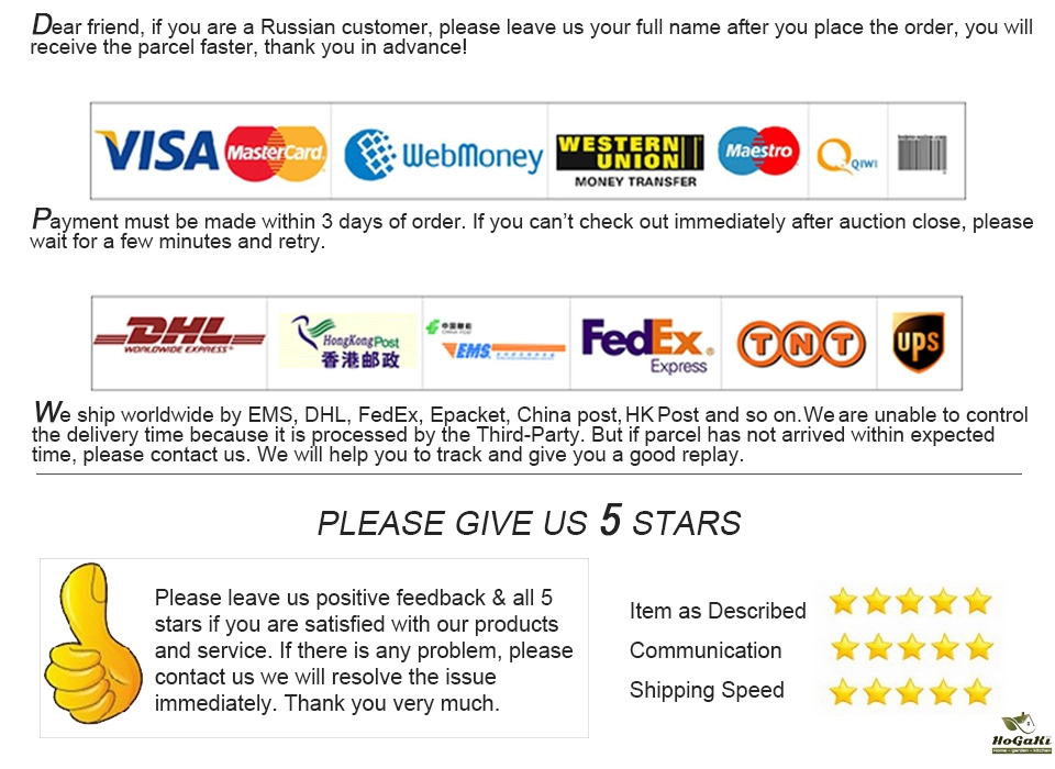 Packages from our warehouse in China will be shipped by ePacket or EMS depending on the weight and size of the product. Packages shipped from our US warehouse are shipped through USPS.
