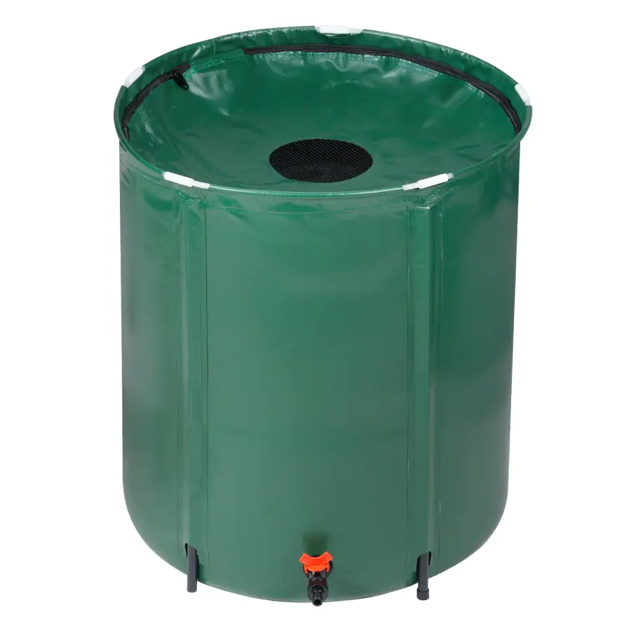 Rain water is ideal for a multitude of applications including biodynamic and organic vegetable gardens, planter beds for botanicals, indoor tropical plants like ferns and orchids, and for cleaning household windows. Our 50 Gallon Folding Rain Barrel will be an indispensable tool for you to collect rain water. Simply place the rain barrel beneath a down spout to capture natural rain water. This rain barrel features a foldable barrel design which makes it easy to store and carry. Besides, its green surface naturally fits in with your backyard sight. Zippered mesh cover allows water to collect while blocking leaves and debris, it is also easy to remove for cleaning and maintenance. Connect a hose to the tap on the bottom or scoop from the top with a watering can. Don't hesitate, come and buy one!