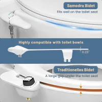 SAMODRA Ultra Slim Bidet Attachment for Toilet Seat - Dual Nozzle, Adjustable Water Pressure, Non-Electric Ass Sprayer