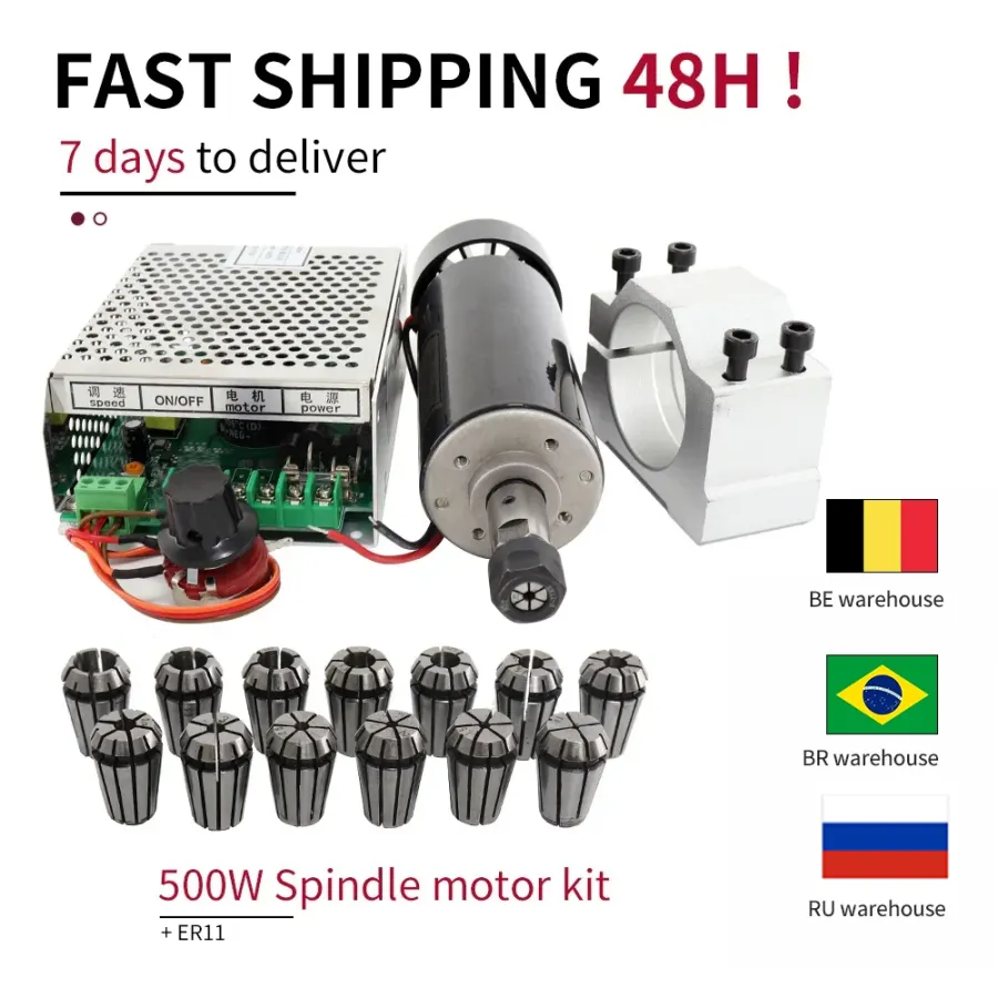 110V 500W Dc Spindle Set 0~110VDC Adjustable speed Governor Power Supply both 110VAC & 220VAC for Engraving machine
