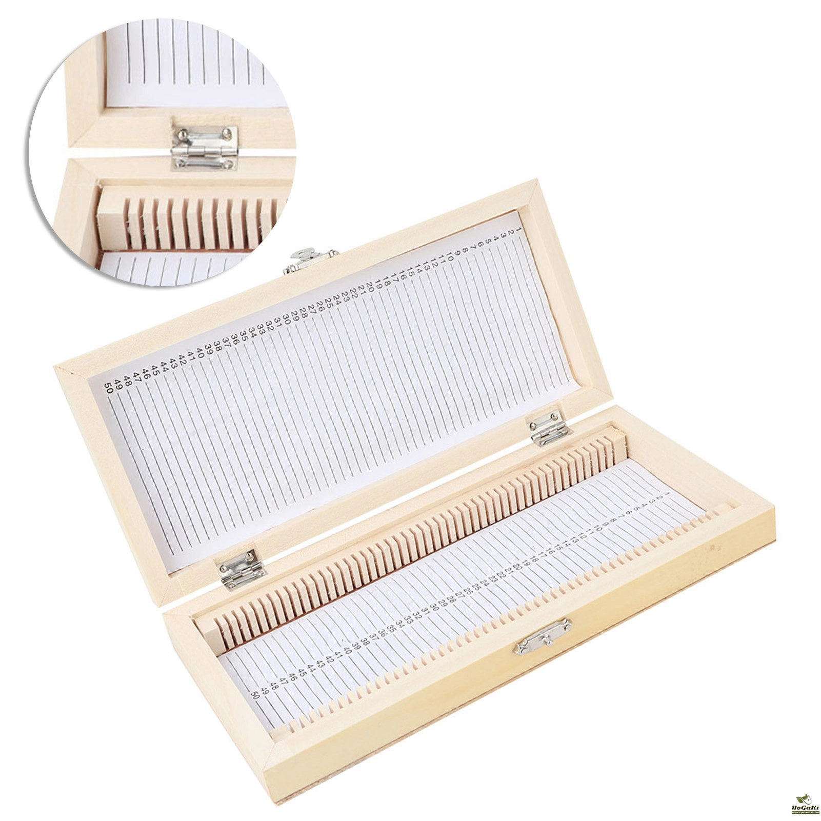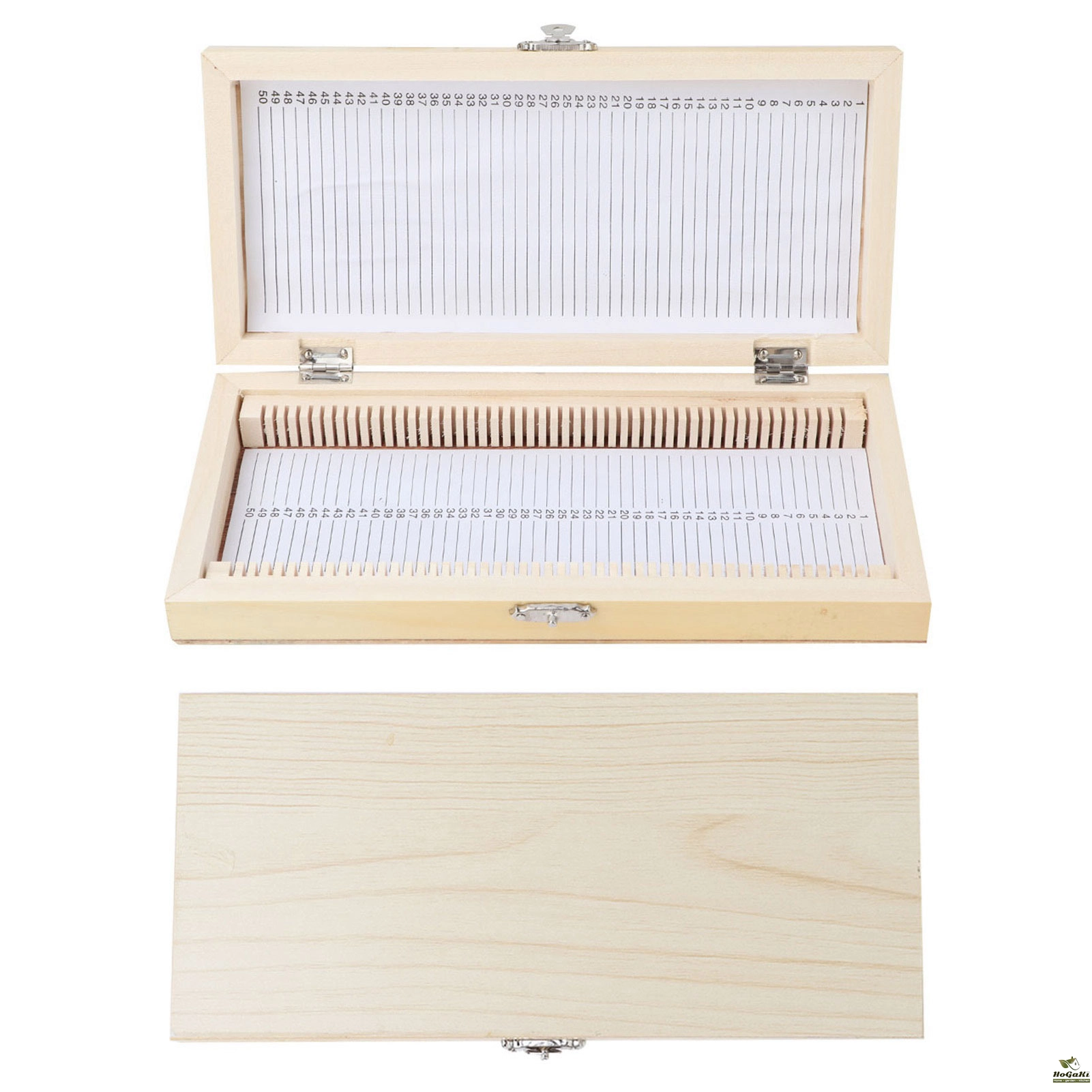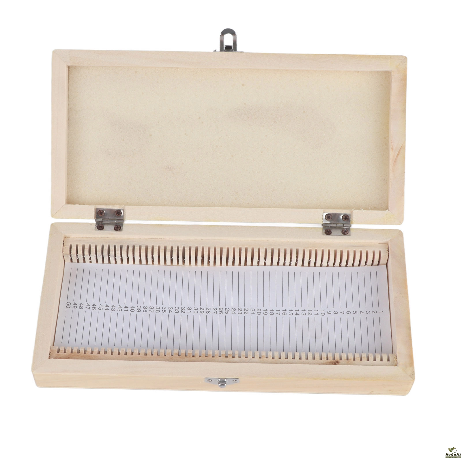 50PCS Biology Glass Prepared Microscope Slides Specimens Wooden Slide Storage Box Case