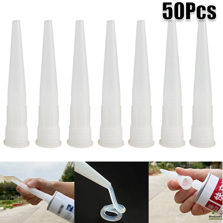 50pcs Glass Nozzles Plastic Glass Glue Caulking Gun Nozzles Sealant Silicone Caulking Tips Mouth Caps Home Construction Tools