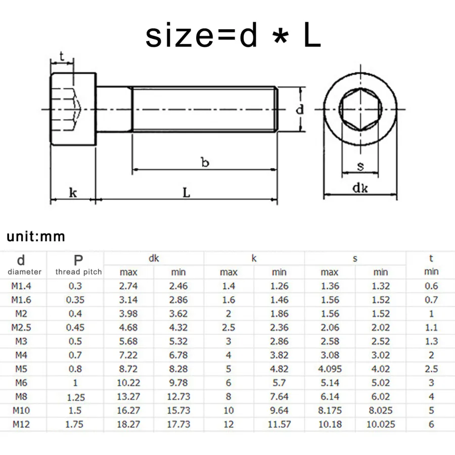 M1.4(1.4mm) / M1.6(1.6mm) / M2(2mm) / M2.5(2.5mm) / M3(3mm) / M4 (4mm) / M5(5mm)