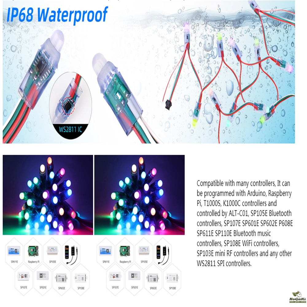 50pcs DC 5V 12V WS2811 Full Color LED Pixel Light Module 12mm 10cm Wires IP68 Waterproof RGB Color Digital LED strings