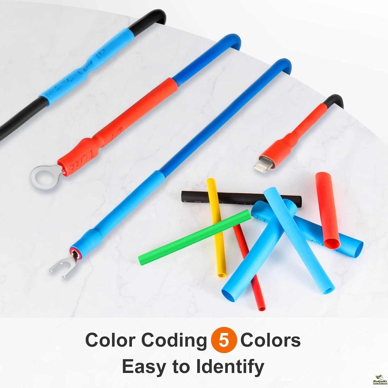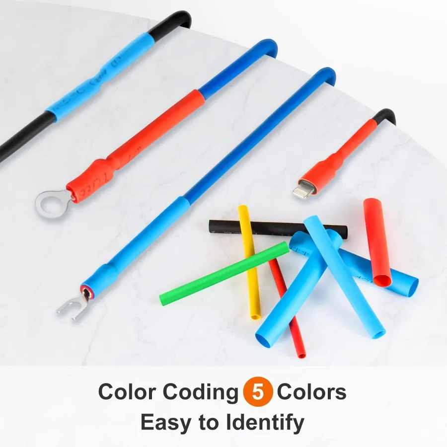 Comes with 560pcs heat shrink tube assorted in plastic box, 5 colors( Yellow, Blue, Black,Green, Red), 12 Specifications , satisfied for your different need