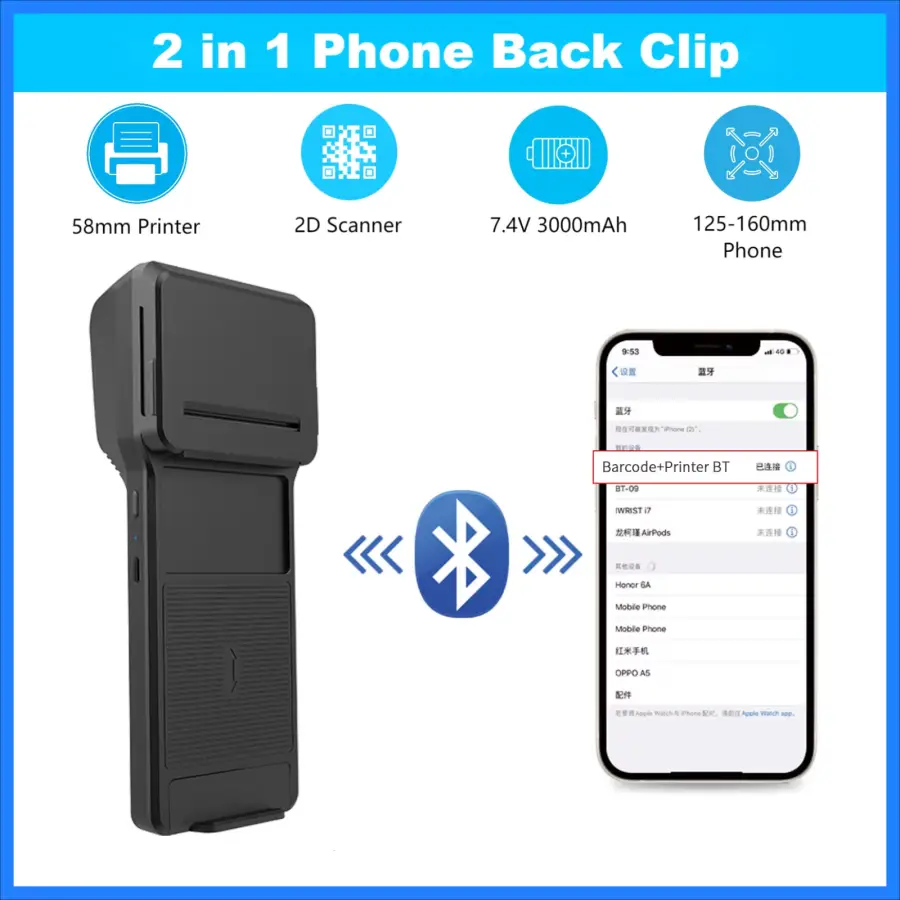 1. Highly integrated: thermal printer, 2D scanner, inbuilt battery and NFC reader (optional)