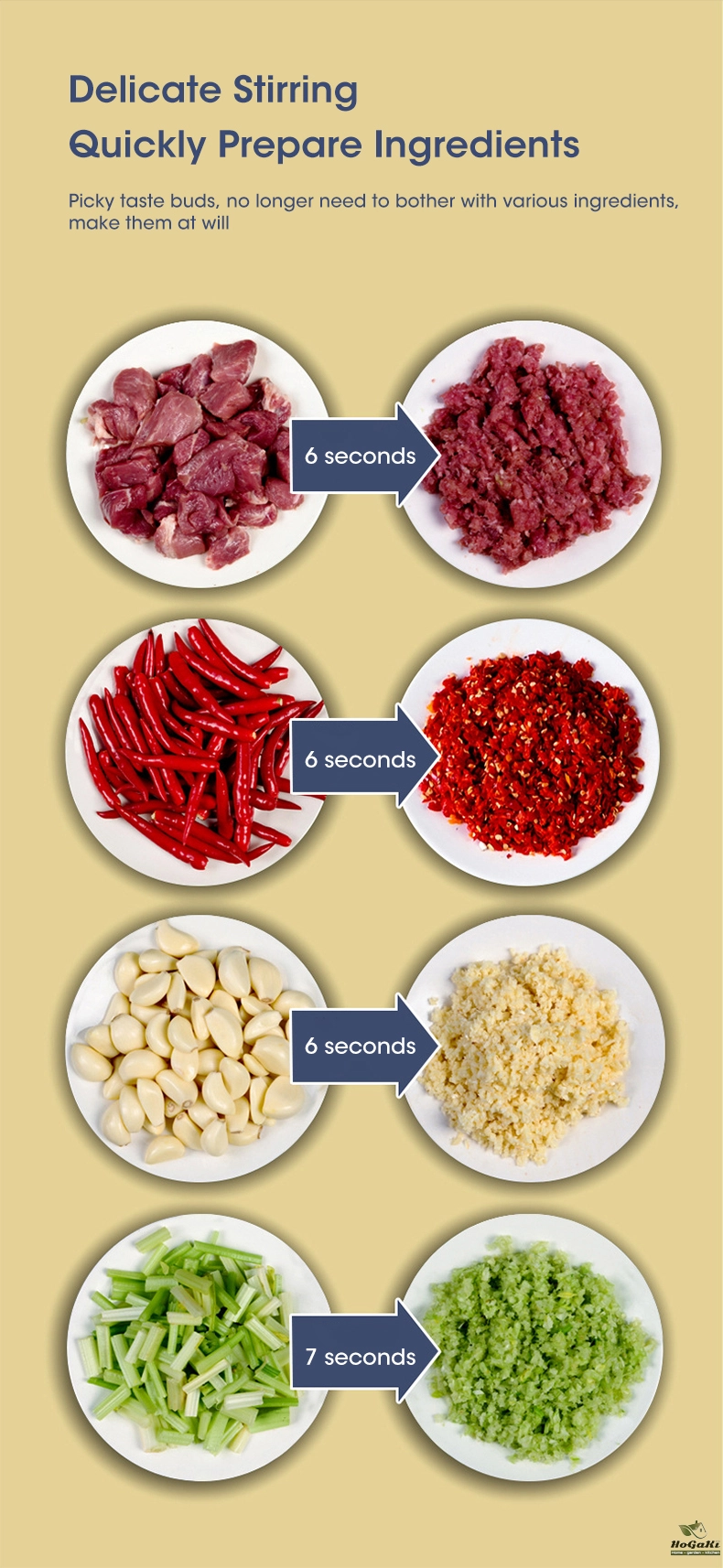 3. Stainless steel six blade and non-slip rubber pad
