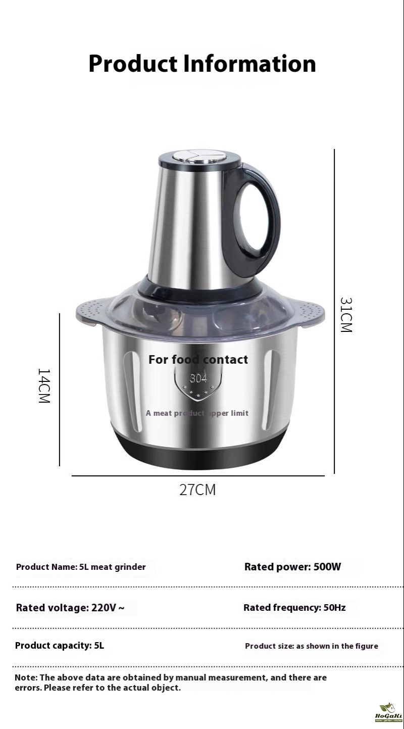 Electric Meat Grinders 5L Food Crusher Stainless Steel Multifunctional Vegetable Slicer Processor Chopper Kitchen Blenders