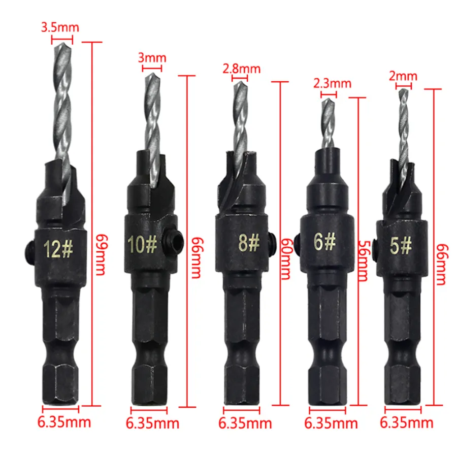 Features: It is possible to drill both screw holes and countersunk holes for accommodating screw caps simultaneously while keeping them on the same axis. After screwing in the screws, the screw caps are located below the plane of the board!