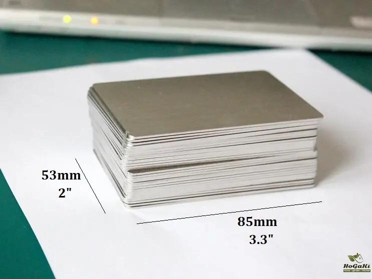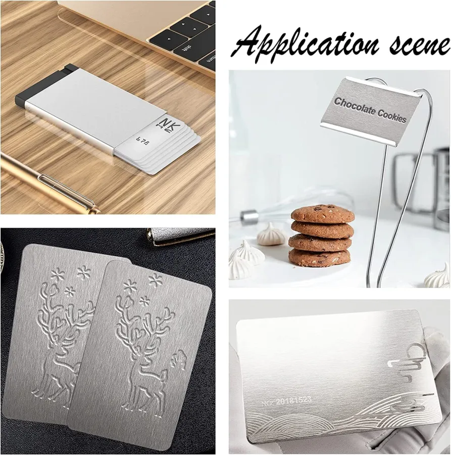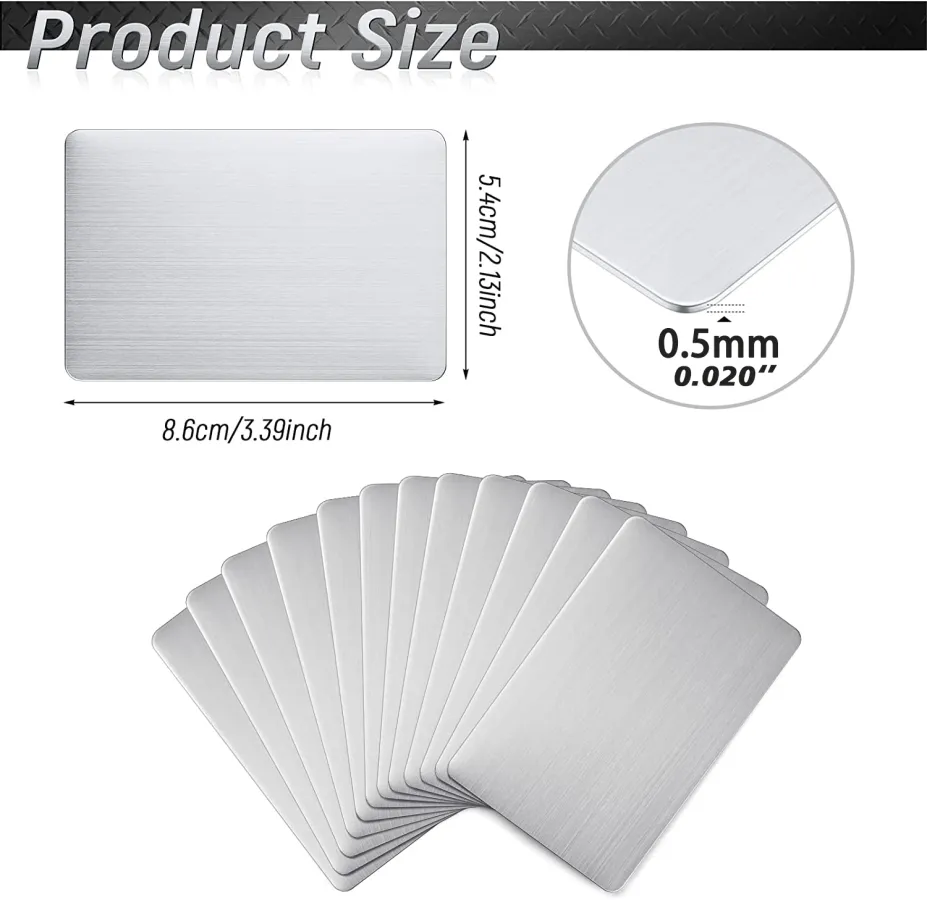 the metal card is blank on both sides, you can carve prints, texts, words, and others you want, which are hard to wear; You can also create your own personalized cards, showing your style and taste in this way