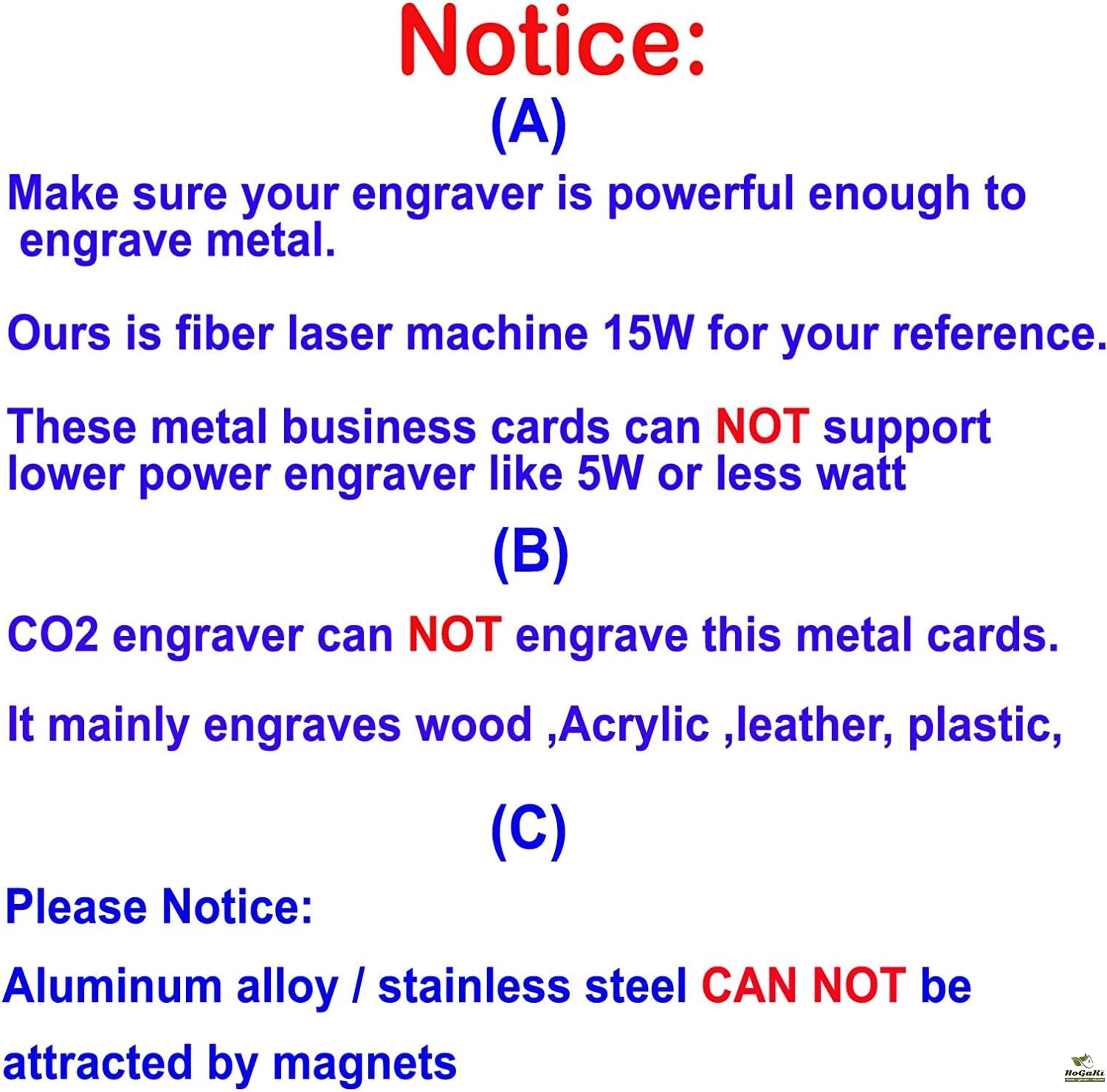 2. If you want to use them to engrave, please make sure your engraver is powerful enough to engrave metal, ours is fiber laser machine 15W (for your reference). These metal business cards can NOT support most lower power engraver like 5W or less watt