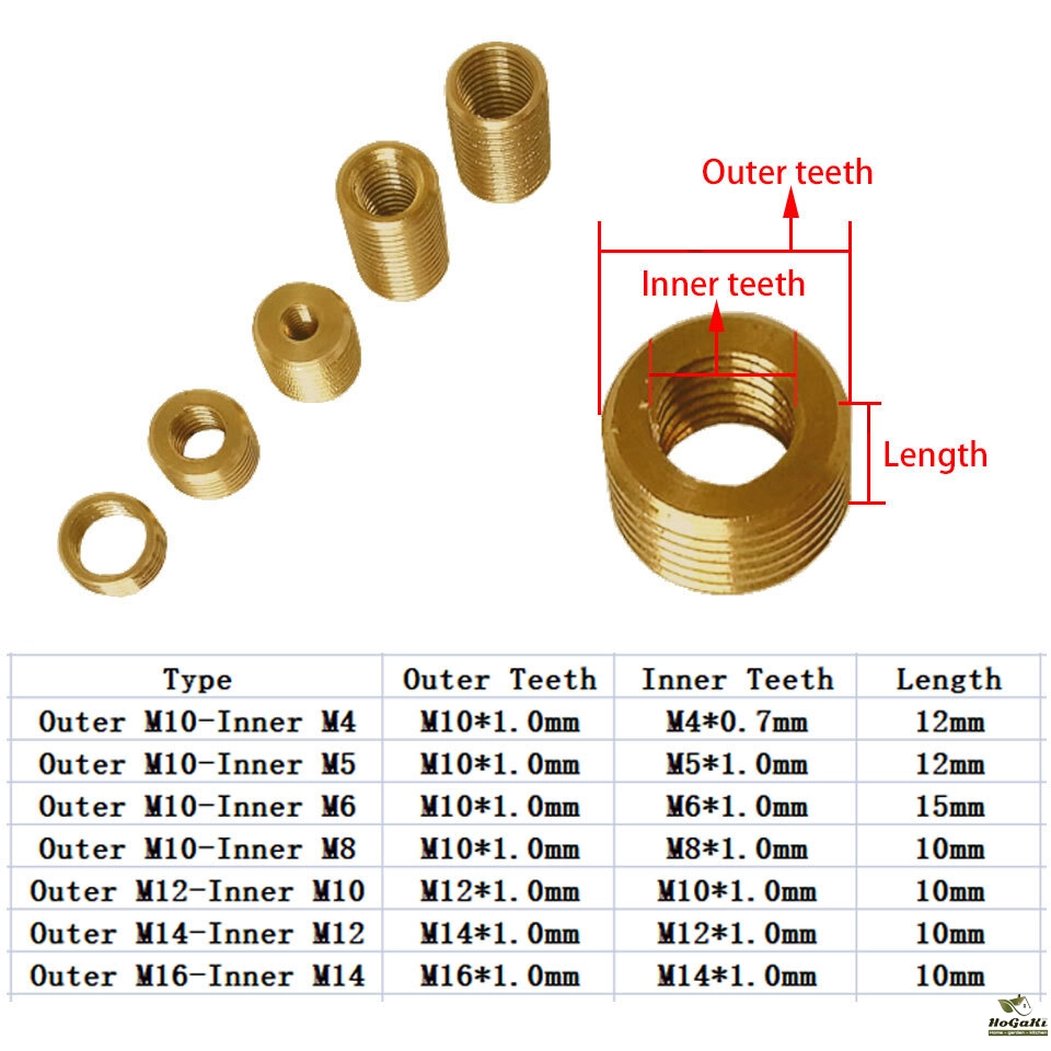5pcs internal and external teeth adapter screw M14 M12 M10 M8 M6 wire opening conversion screw M10*1 external teeth For DIY