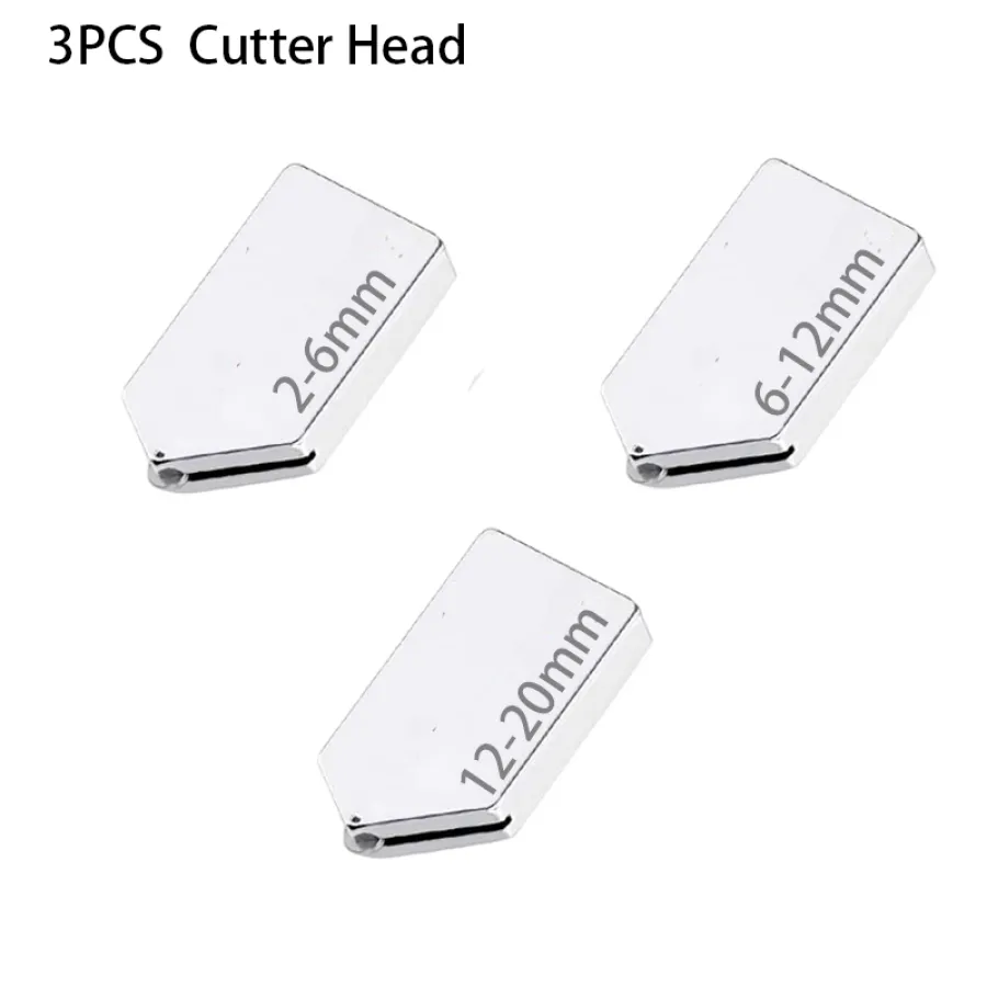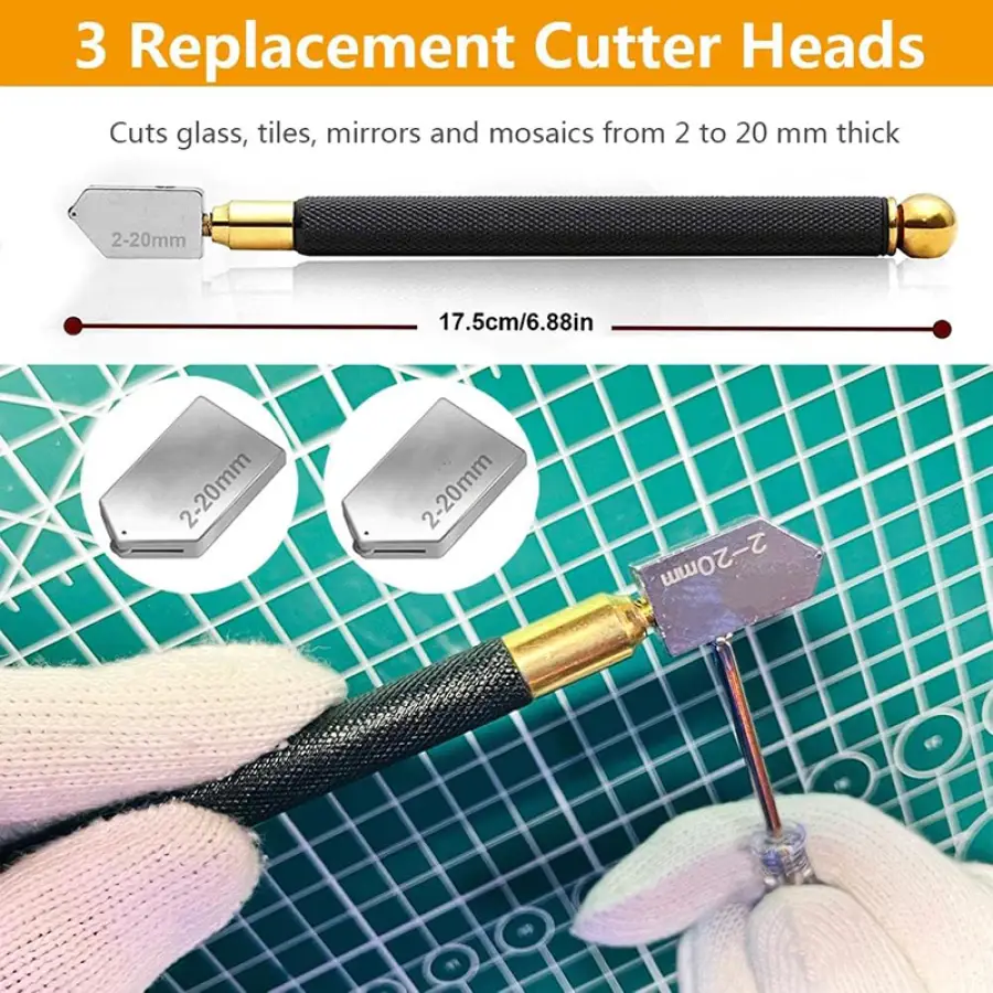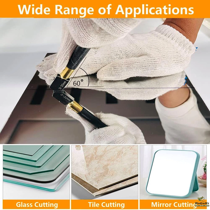 【LARGER CUTTING RANGE】 3 pieces of cutting heads with different sizes in our package, 2-6mm, 6-12mm and 12-20mm, Easy to change the cutting blade for cutting different glass thickness.
