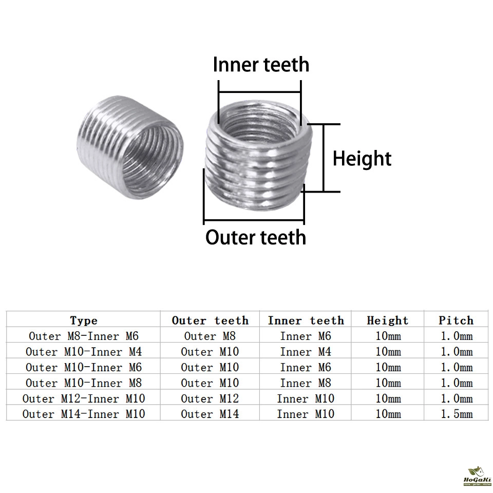 Outer M8-Inner M6 | Outer M8 | Inner M6 | 10mm | 1.0mm |