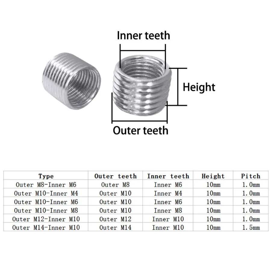 5pcs internal and external teeth adapter screw M14 M12 M10 M8 M6 wire opening conversion screw M10*1 external teeth For DIY
