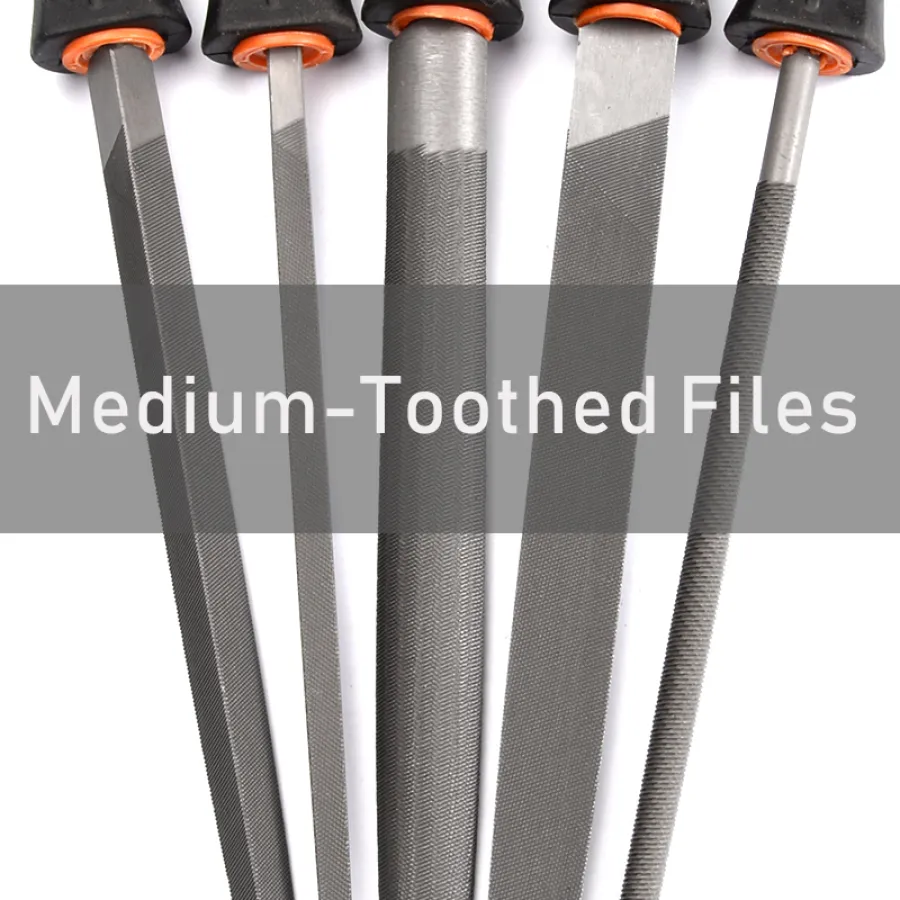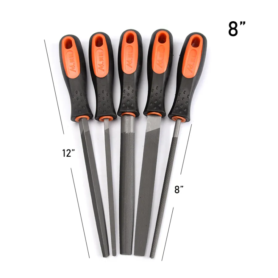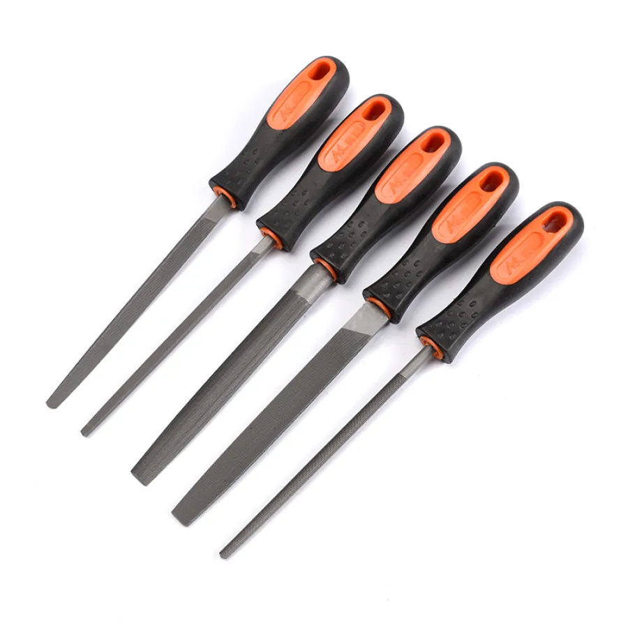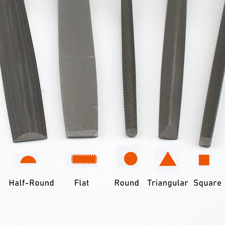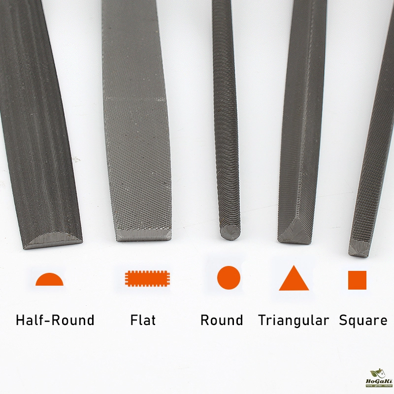 - Five different shapes: Round file, half-round file, triangular file, square file, flat file