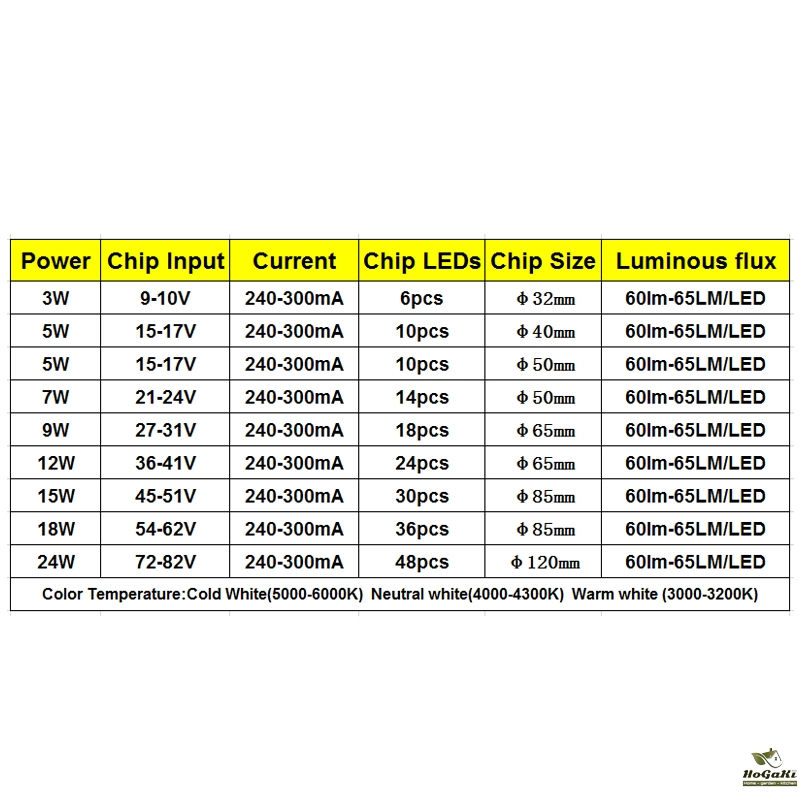 Power:3W/ 5W/ 7W/ 9W/ 12W/ 15W/ 18W/ 24W