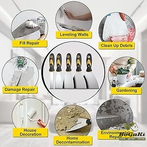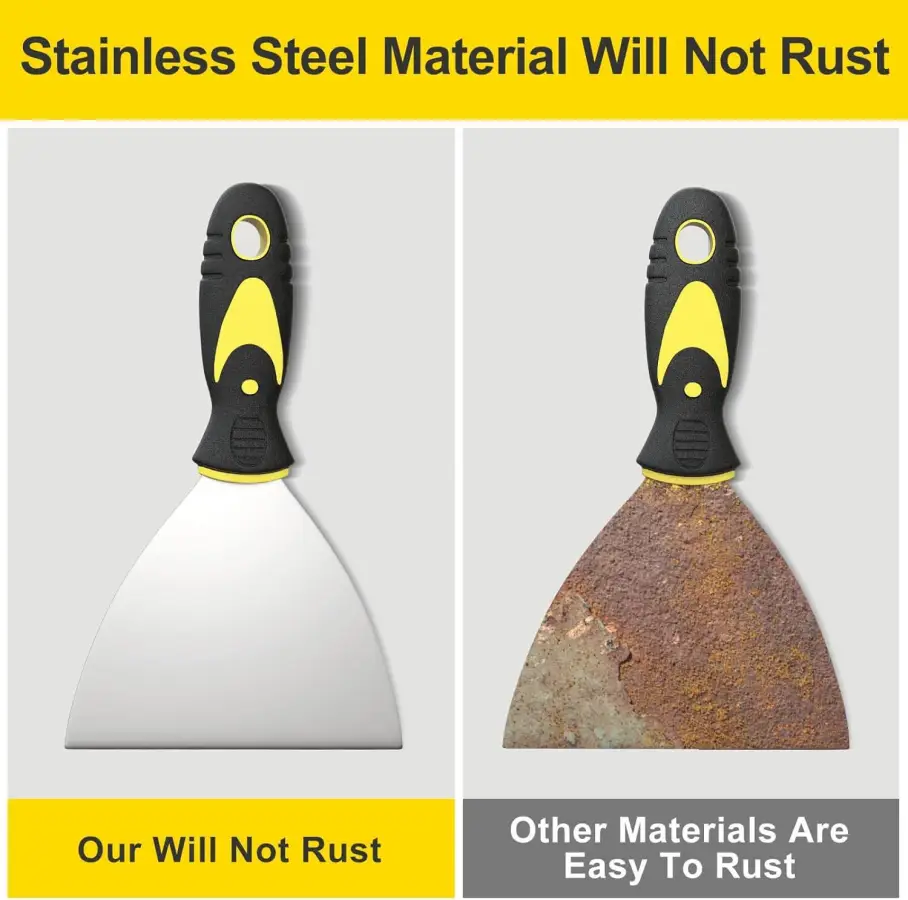 Putty Knives, Also Commonly Known As " Putty Knives" Are Used In Various Construction Industries To Scrape Surfaces Or Lay Materials Such As Plaster, Putty, And Can Also Work To Repair Cracks, Fill Holes, Scrape Paint, to apply spackle to walls, And Remove Wallpaper Are A Must-have Putty Knife Set For Your Home