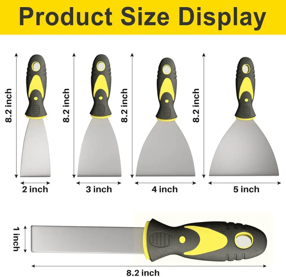 2)Size: 1 Inch Putty Knife, 2inch Putty Knife, 3 Inch Putty Knife, 4 Inch Putty Knife, 5 Inch Putty Knife