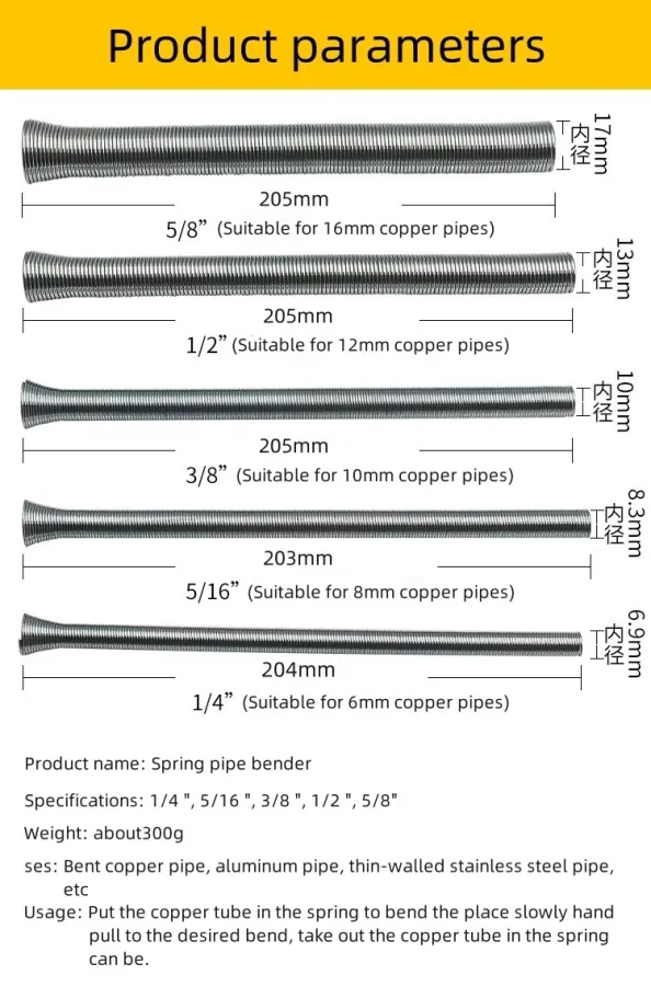 5 x spring tube bender (5 sizes 1/4'', 5/16'', 3/8'', 1/2''and 5/8'')