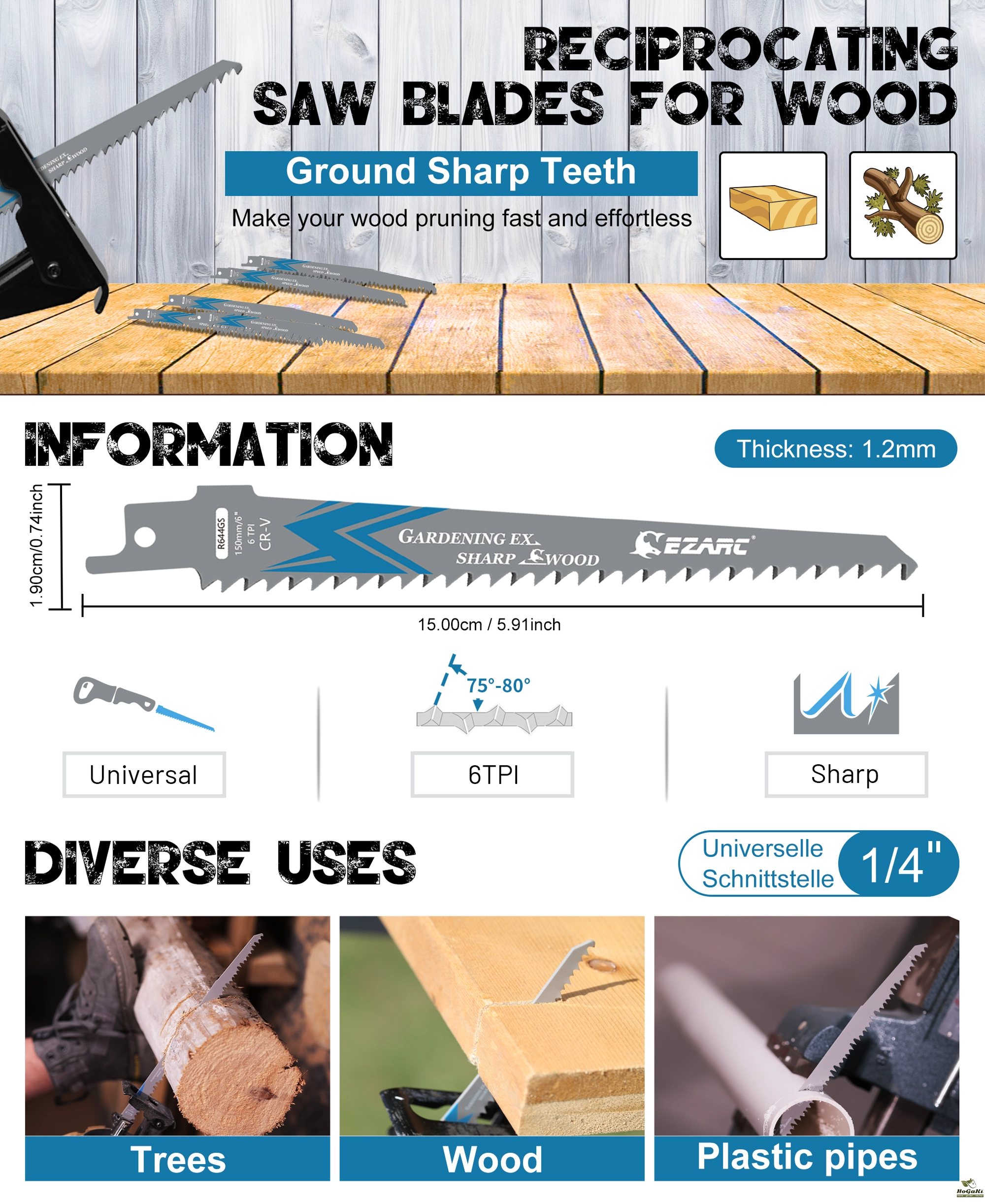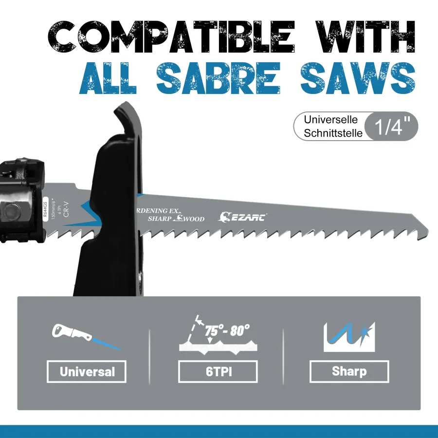 5 x EZARC 150mm (6TPI) Wood Pruning Reciprocating Saw Blades