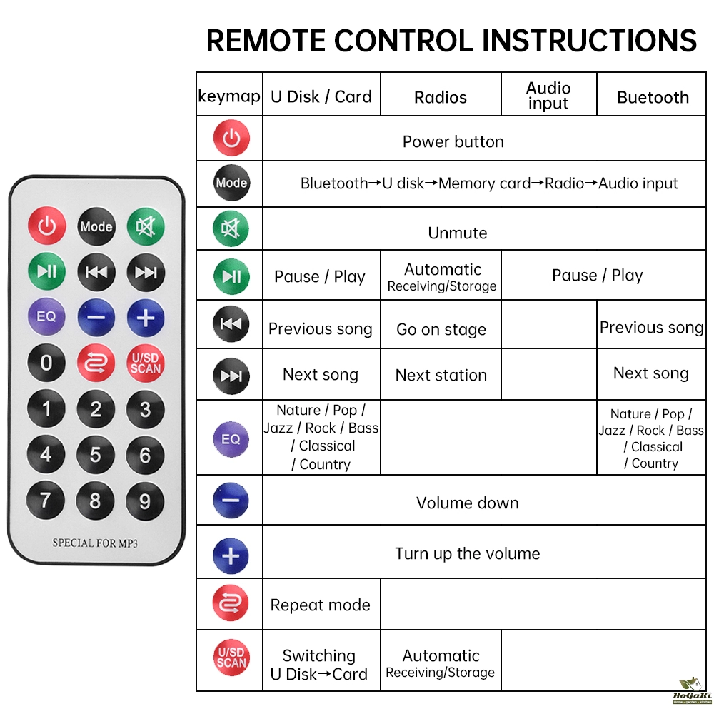 Support Function Introduction: Supports MP3/USB/TF/LINE IN/FM/BT/Remote Control/DC 5V or 12V (optional)