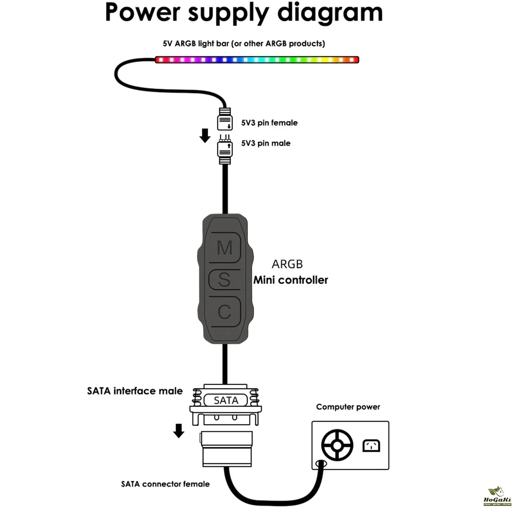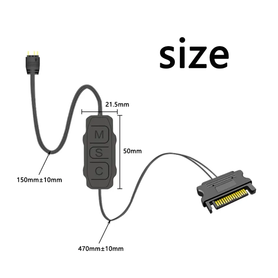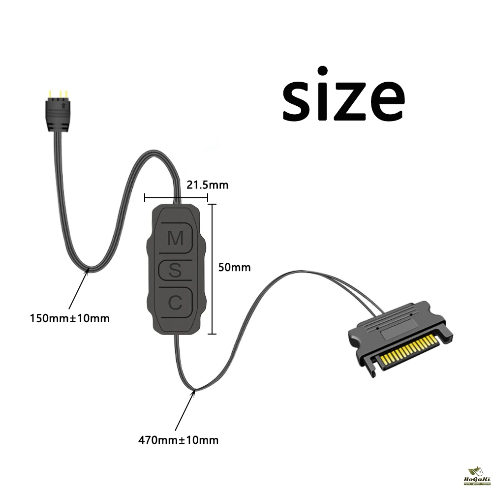 1. Extended Cable for Seamless Connectivity: The 5V 3-pin interface features an extended cable design of ARGB controller cable, ensuring convenient and secure connections. Say goodbye to loose connections and cables that are too short. (Note: This product uses a SATA power interface directly connected to the computer's power supply, eliminating the need for motherboard support for 5V 3-pin ARGB for controlling ARGB lighting.)