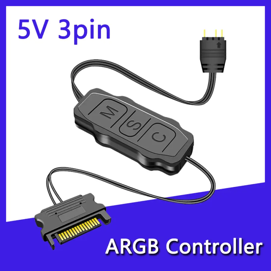 5V 3PIN ARGB Controller SATA Interface Extension Cable Light Controller Adapter for PC Fan CPU Cooler Fan Light Strip