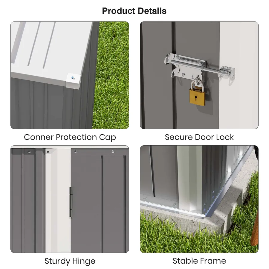 [Durable Material and Stable Structure] Its strong construction and the thick galvanized steel we used make this shed long-lasting, non-corrosive, and UV resistant. The overlapped wallboard is waterproof and moisture-proof, making it suitable for usage in all-weather circumstances.