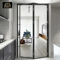 Sixinalu 2.5X2m Custom Bi-Folding Door Accordion Sliding Slim Frame Aluminum Front Doors Double Glass Entry Kitchen Study Room