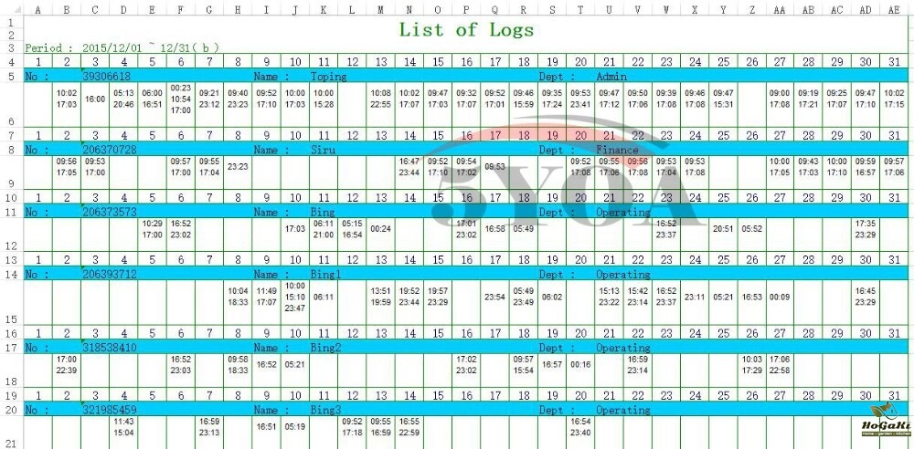 no need software, on the machine name, Department, frequency and other information, can be directly output attendance reports, user operation is simple